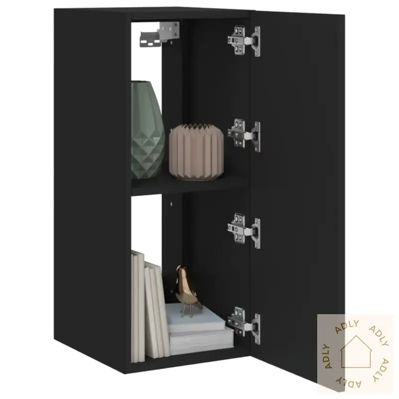 Slitesterkt materiale: TV-benken er laget av konstruert tre, kjent for høy kvalitet og en jevn overflate. Materialet gir både styrke, stabilitet og lang levetid, samtidig som det tåler fuktighet – ideelt for daglig bruk.RGB LED-lys: Skapet har integrerte RGB LED-lys som virkelig løfter interiøret. Med mulighet for å skifte mellom flere farger og innstillinger kan du enkelt tilpasse stemningen hjemme. LED-lysene gir en trendy og tidsriktig finish, og du har valgfrihet til å sette lyset slik du vil – enten stødig eller automatisk.Rikelig med lagringsplass: Bak dørene finner du to rom som gjør det lett å holde stua ryddig og organisert. Perfekt til småting som bøker, DVD-er, blader eller spill – alt du ønsker å ha innen rekkevidde men skjult for synet. Flott også sammen med bokhyller og stående hyller.Allsidig bruk: Du kan bruke denne veggmonterte enheten som både TV-benk, vegghengt nattbord eller kombinere flere moduler for å lage en personlig veggløsning som passer ditt behov. Fleksibel oppbevaring for ulike rom hjemme.Veggmontert design: Monteringen på veggen gir ekstra lagringsplass uten å ta opp verdifull gulvplass. Dette gjør rengjøringen enklere og gir et minimalistisk uttrykk – samtidig som det åpner for kreativ møblering med andre møbler til hjemmet og hagemøbler dersom ønskelig.Godt å vite:
