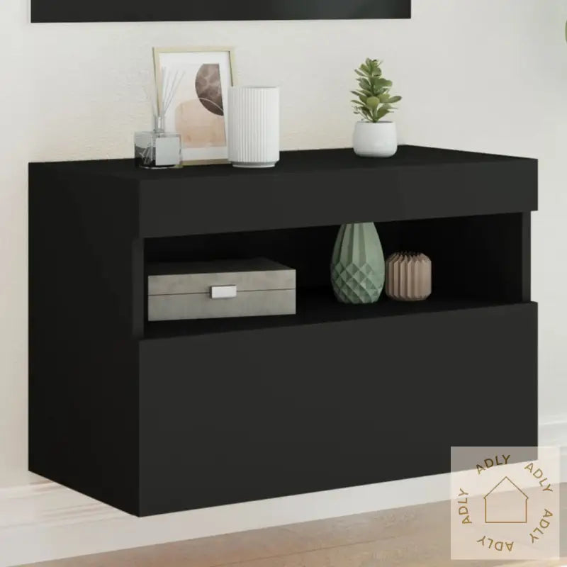 Skruer og plugger til veggmontering følger ikke med. Sørg for å velge skruer og plugger som passer til nettopp din veggtype. Er du usikker, lønner det seg å ta kontakt med en fagperson og alltid følge de vedlagte instruksjonene steg for steg.Skapet har USB-kontakt og krever en 5V, sertifisert USB-strømkilde (ikke inkludert).Farge: svartMateriale: konstruert treMål: 60 x 30 x 40 cm (B x D x H)Montering kreves: ja