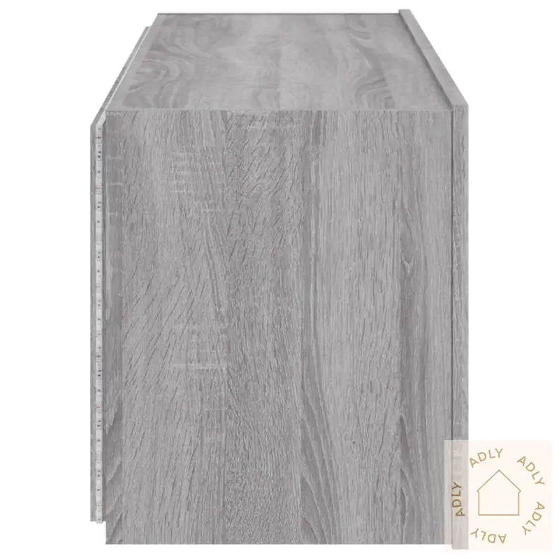 Slitesterkt materiale: Laget av konstruert tre med høy kvalitet, har benkene en jevn overflate som ser bra ut og tåler daglig bruk. Det robuste materialet gir både styrke og stabilitet, og det er også motstandsdyktig mot fuktighet – ideelt for aktive hjem og for deg som ønsker langvarige møbler.RGB LED-lys: Skapet har integrerte RGB LED-lys som gir et moderne og spennende uttrykk. Du kan enkelt velge blant ulike farger og justere lysene via tilpassbare menyer, eller sette dem til å endre seg automatisk. Lysene tilfører et trendy preg til rommet ditt, enten du vil ha en avslappet atmosfære når du ser film, eller ønsker å imponere gjester med stilig belysning.Rikelig med lagringsplass: Hvert skap har to separate rom bak dørene, slik at du enkelt kan organisere og oppbevare småting som bøker, DVDer eller magasiner. Alt ligger pent skjult, men alltid tilgjengelig når du trenger det.Allsidig: Denne TV-benken er fleksibel og kan også brukes som vegghengt nattbord om du vil. Du kan kombinere flere skap for å lage en unik veggløsning og tilpasse etter behov og stil. Det gir stor frihet når du skal innrede hjemmet ditt med praktiske møbler.Veggmontert design: Monteringen på veggen gjør det mulig å frigjøre gulvplass, noe som gir et luftig og moderne inntrykk. Du får mer plass å bevege deg på, samtidig som du holder ting organisert og ryddig. Perfekt løsning for mindre rom eller for deg som vil ha et minimalistisk preg på innredningen.Godt å vite: