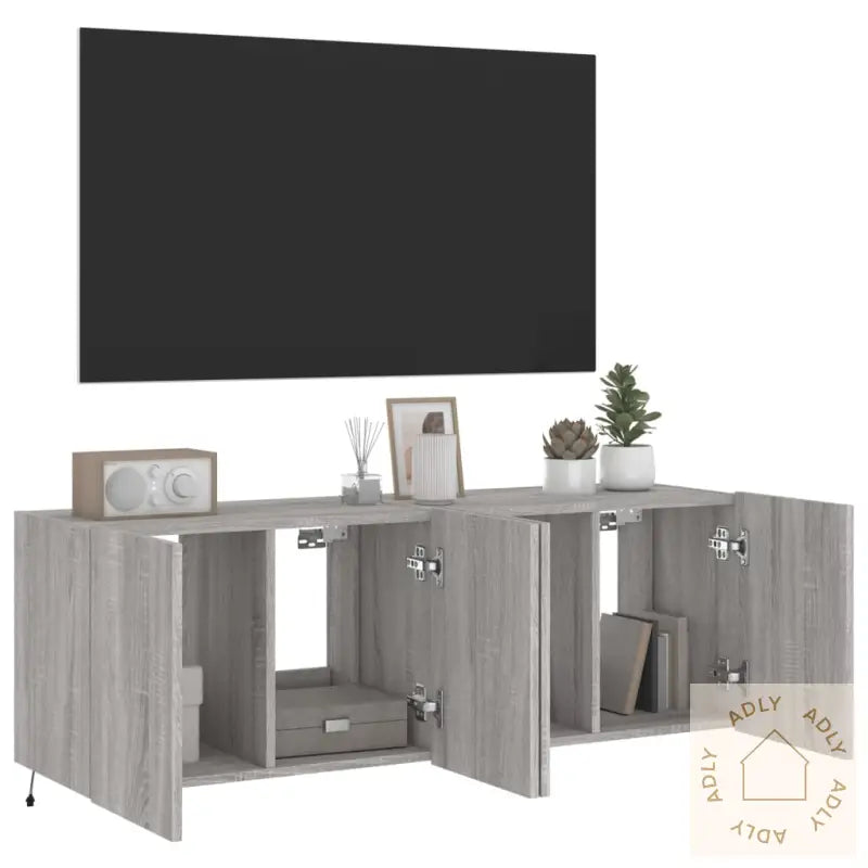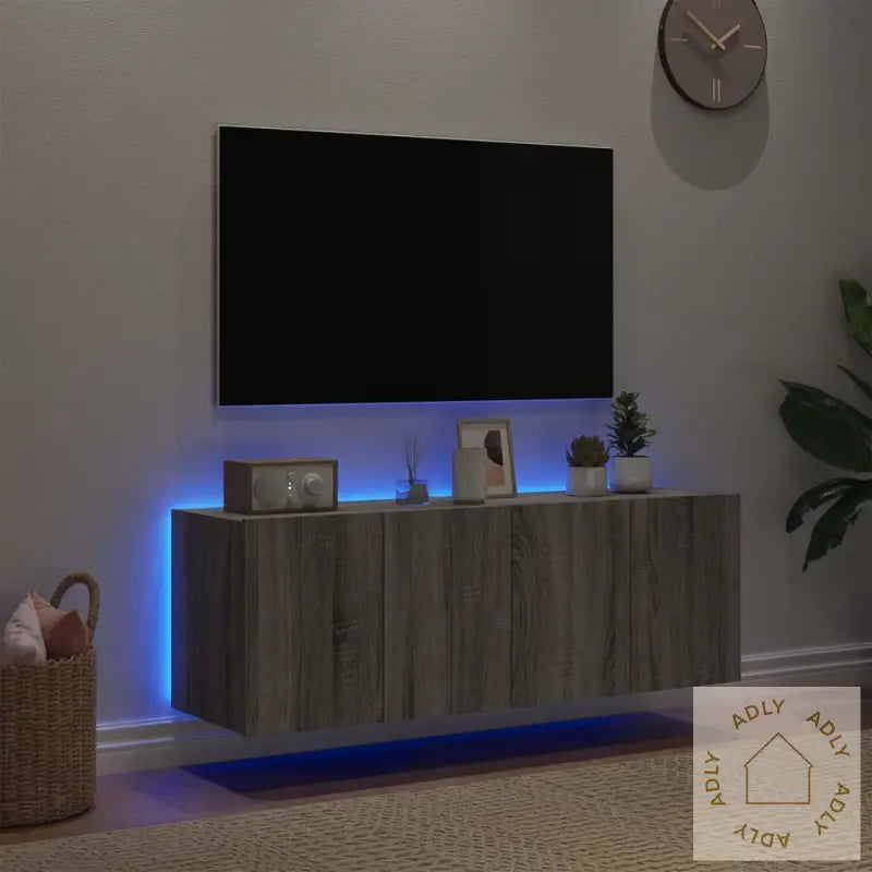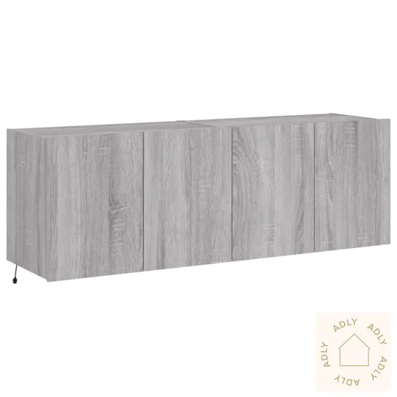 Skruer og plugger til veggmontering følger ikke med. Det er viktig å bruke festemidler som passer til akkurat dine vegger. Er du usikker, bør du spørre en fagperson. Husk å følge monteringsinstruksjonene nøye for best resultat.TV-benken har USB-kontakt for RGB LED-lysene og trenger en sertifisert 5V USB-strømkilde (ikke inkludert) for å fungere.Farge: grå sonomaMateriale: konstruert treMål (hver): 60 x 35 x 41 cm (B x D x H)Mål rom: 28 x 35 x 37 cm (B x D x H)Montering kreves: jaLeveransen inneholder:2 x veggmonterte TV-benker