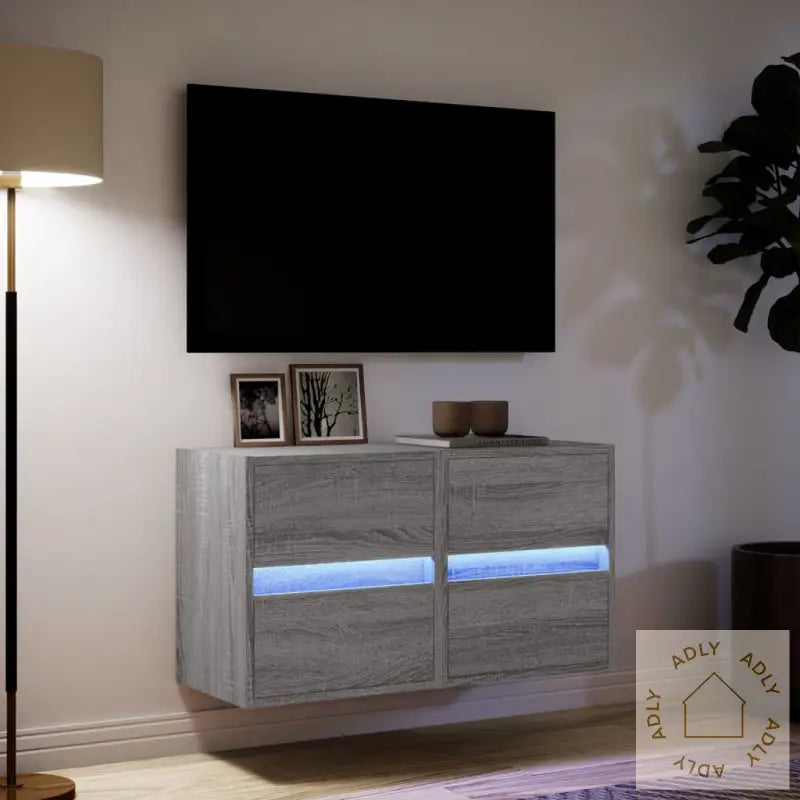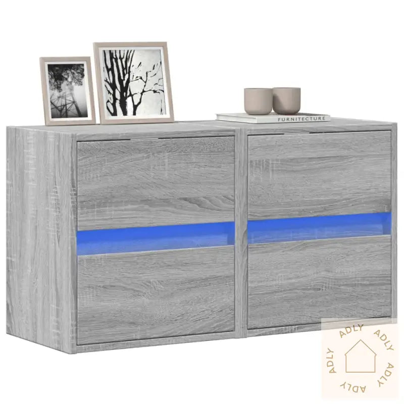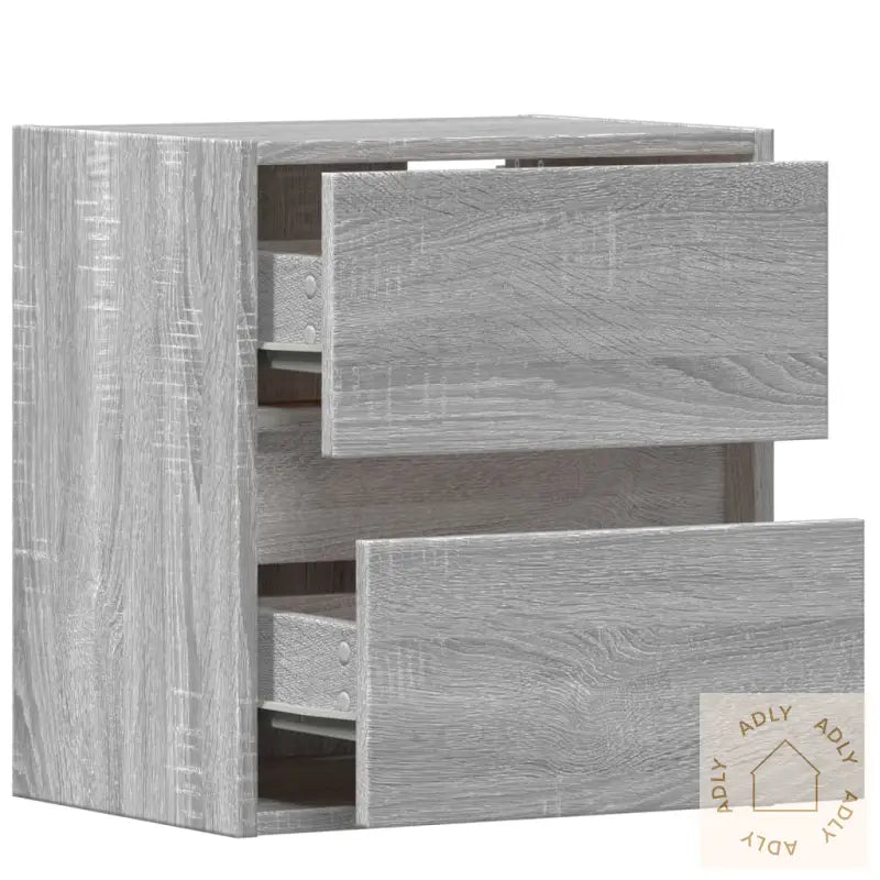 Skruer og plugger for montering på innvendig vegg følger ikke med. Sørg for å velge det som passer akkurat din veggtype. Ved usikkerhet, rådfør deg gjerne med en fagperson. Husk å lese og følge hele monteringsveiledningen nøye for å få et trygt og godt resultat.Produktet har USB-kontakt og trenger en sertifisert 5V USB-strømkilde (følger ikke med).Farge: Grå sonomaMateriale: Konstruert treMål: 41 x 31 x 45 cm (L x B x H)Antall skuffer: 2LED-lys inkludertMontering nødvendigLeveransen inkluderer:2 x veggmonterte TV-benker
