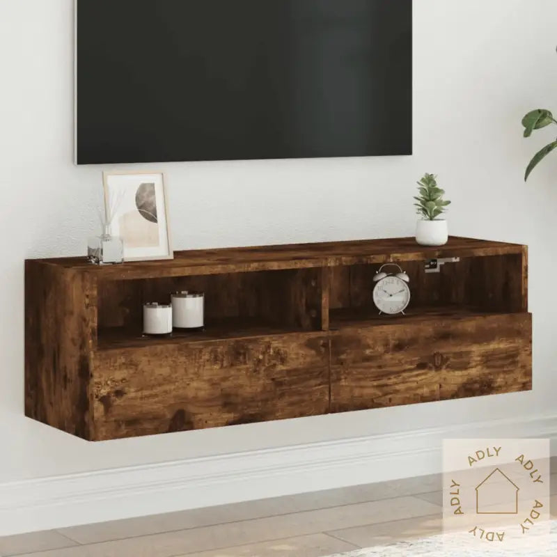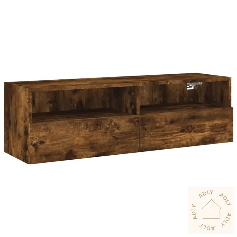 Slitesterkt materiale: Benken er laget av konstruert tre, noe som gir både høy kvalitet og solid styrke. Den glatte overflaten er lett å holde ren, og materialet tåler fuktighet godt—noe som gir deg en TV-benk som holder seg pen over tid sammen med resten av møbler til hjemmet ditt.Praktisk lagringsplass: Du får to hyller og to rom med dører, perfekte til å samle alt fra bøker, fjernkontroller, DVDer, magasiner eller andre småting. Dette gir deg bedre orden og gjør at du enkelt kan holde oversikt over favorittene dine.Plassbesparende veggmontering: Siden benken monteres på veggen sparer du ikke bare gulvplass, men gir også et stilrent uttrykk i rommet. Alt ser mye mer organisert ut, samtidig som det gir ekstra plass til andre møbler eller hagemøbler hvis du har en åpen løsning mot terrasse eller uteplass.Godt å vite: