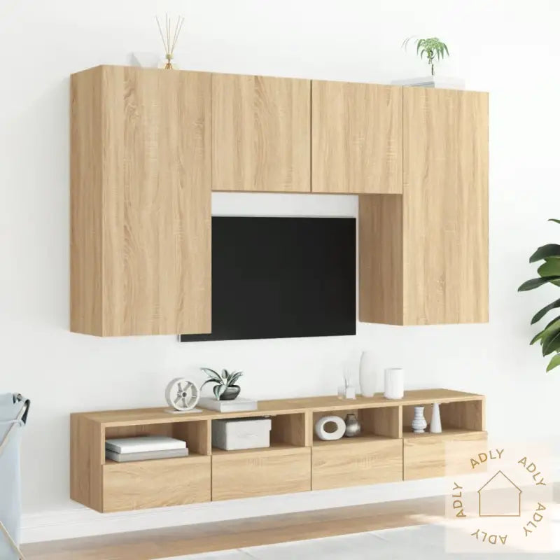 - Slitesterkt materiale: TV-benken er laget av konstruert treverk av høy kvalitet med en fin og glatt overflate. Dette materialet gir både holdbarhet og stabilitet, samtidig som det tåler fuktighet godt. Velg dette møbelet for et moderne preg i stuen med den trendy looken som sonoma eik gir.