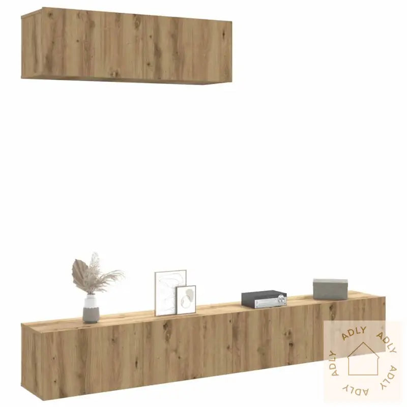 Slitesterkt materiale: Skapene er laget av konstruert treverk med høy kvalitet og en glatt overflate. Dette materialet gir ekstra styrke, stabilitet og god motstand mot fuktighet, slik at TV-benken holder seg pen lenge. Den solide konstruksjonen gjør den perfekt for daglig bruk.Rikelig lagringsplass: Du får rikelig med plass til å organisere og oppbevare alt fra DVD-spillere og mottakere, til disker og småting, slik at det alltid ser ryddig ut rundt underholdningsområdet ditt.Veggmontert design: Skapet festes enkelt på veggen, noe som gir et luftig uttrykk og frigjør verdifull gulvplass. Dette gjør det ideelt for mindre rom og for deg som ønsker et moderne, minimalistisk utseende sammen med andre møbler til hjemmet.Visningsfunksjon: Toppen av den flytende TV-benken egner seg perfekt til å vise fram bilder, potteplanter eller dekorative elementer som gir personlig stil til stua.Godt å vite: