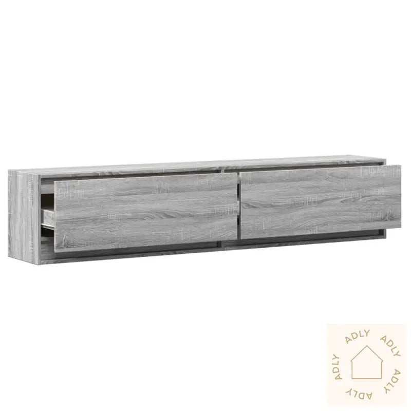 Du må selv sørge for passende skruer og plugger til veggmontering, da disse ikke følger med. Husk å ta hensyn til hvilken type vegg du har, og spør gjerne en fagperson hvis du er usikker. Følg instruksjonene nøye under montering.Produktet har USB-kontakt til LED-lysene og krever en sertifisert 5V USB-strømkilde (ikke inkludert).Farge: grå sonomaMateriale: konstruert treMål: 180 x 31 x 38 cm (B x D x H)Maksimal lastekapasitet (totalt): 50 kg – trygt for både TV og ekstrautstyrMaksimal lastekapasitet (øverst): 40 kgMaksimal lastekapasitet (per skuff): 5 kgMontering kreves: ja