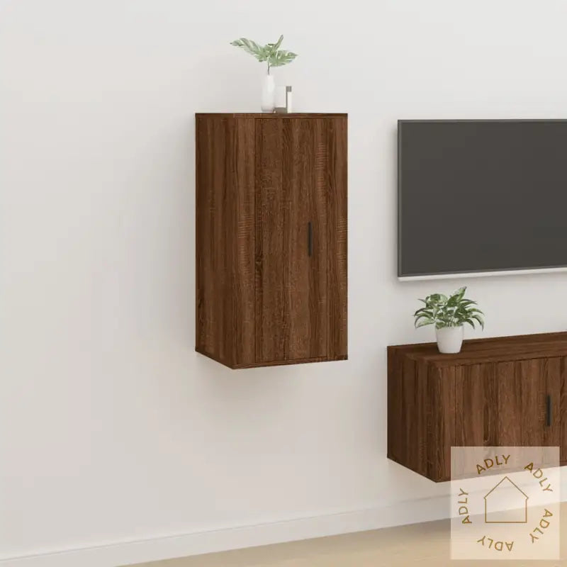 Praktisk materiale: Dette medieskapet er laget av konstruert treverk av høy kvalitet. Overflaten er glatt, og materialet er kjent for å være holdbart, stabilt og motstandsdyktig mot fukt – ideelt i norske hjem. Den brune eik-fargen gir en varm og naturinspirert følelse som glir fint inn blant øvrige møbler og selv utendørsmøbler som hagemøbler, hvis du vil bruke det som ekstra lagringsplass i inngangspartiet eller på verandaen.Rikelig med lagringsplass: Med tre rom får du massevis av plass til å organisere alt fra mediespillere, fjernkontroller og blader til personlige eiendeler. Dette bidrar til et ryddig og oversiktlig miljø i stua.Veggmontert funksjon: Siden TV-benken monteres på veggen, frigjør du gulvplass og skaper romfølelse. Perfekt for små leiligheter, soverom eller rom der du ønsker et minimalistisk uttrykk.Multifunksjonelt skap: Toppen av denne TV-benken er solid nok til å vise frem pyntegjenstander, fotorammer eller potteplanter. Skapet kan like gjerne brukes som nattbord, oppbevaringsløsning i gangen, eller kombinert med andre brun eik-møbler for et gjennomført preg.To monteringsmuligheter: Dørene kan enkelt monteres på høyre eller venstre side, avhengig av hva som passer best i din innredning. Det gir deg fleksibilitet i oppsettet når du plasserer ulike typer møbler til hjemmet.Merk: