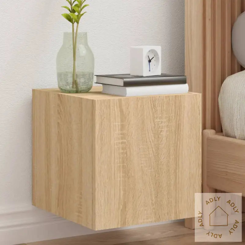 Skruer og plugger for montering følger ikke med. For sikker oppheng anbefales det å velge festemidler som passer akkurat din veggtype. Er du usikker, kan det lønne seg å ta kontakt med en fagperson. Følg alltid instruksjonene nøye for trygg montering.Produktet har en USB-kontakt som krever en sertifisert 5V USB-strømkilde (ikke inkludert), noe som gjør det enkelt å koble til RGB LED-lysene.Farge: Sonoma eik – et tidløst og populært valg som matcher mange ulike hagemøbler og innredningsstiler.Materiale: konstruert tre.Mål: 30,5 x 35 x 30 cm (B x D x H).Montering kreves: ja.Leveransen inneholder:2 x veggmonterte TV-benker.