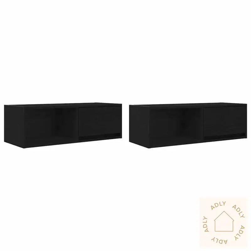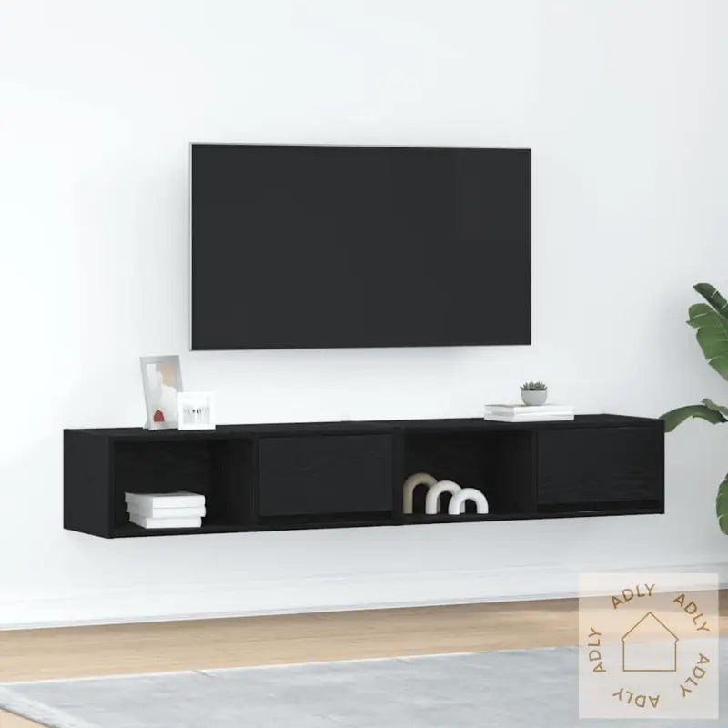 Disse vegghengte TV-benkene er en smart og stilren løsning for å maksimere plassen i hjemmet. Med deres moderne design i svart eik gir de et eksklusivt preg samtidig som de holder gulvet fritt, noe som gjør det enklere å holde stuen ryddig.