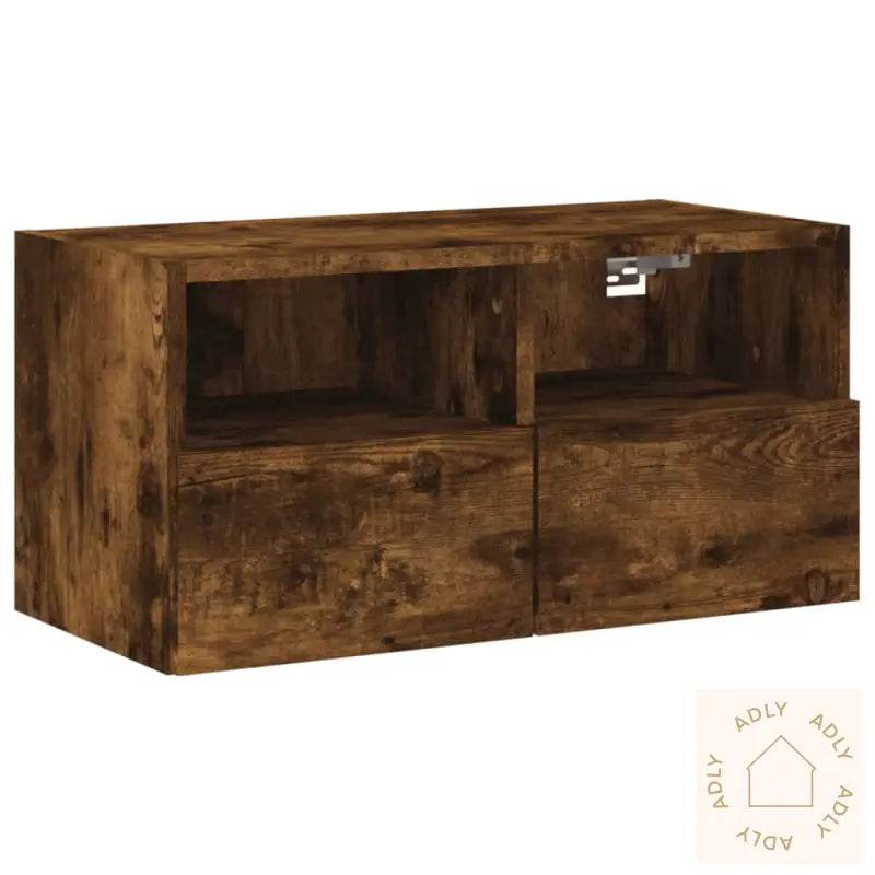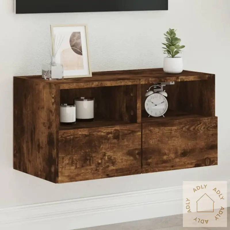 Skruer og plugger til veggmontering følger ikke med. Finn festemidler som passer for akkurat dine vegger; spør gjerne en fagperson om du er usikker, og følg alltid monteringsinstruksjonene nøye.Farge: Røkt eikMateriale: Konstruert treMål: 60 x 30 x 30 cm (B x D x H)Mål rom: 28 x 28,5 x 12,5 cm (B x D x H)Montering kreves: Ja