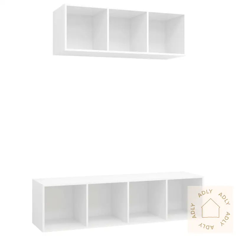 Farge: hvitMateriale: konstruert treMontering kreves: jaLeveransen inneholder:1 x TV-benk: 37 x 37 x 107 cm (B x D x H)1 x TV-benk: 37 x 37 x 142,5 cm (B x D x H)