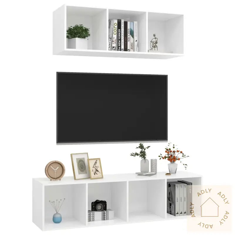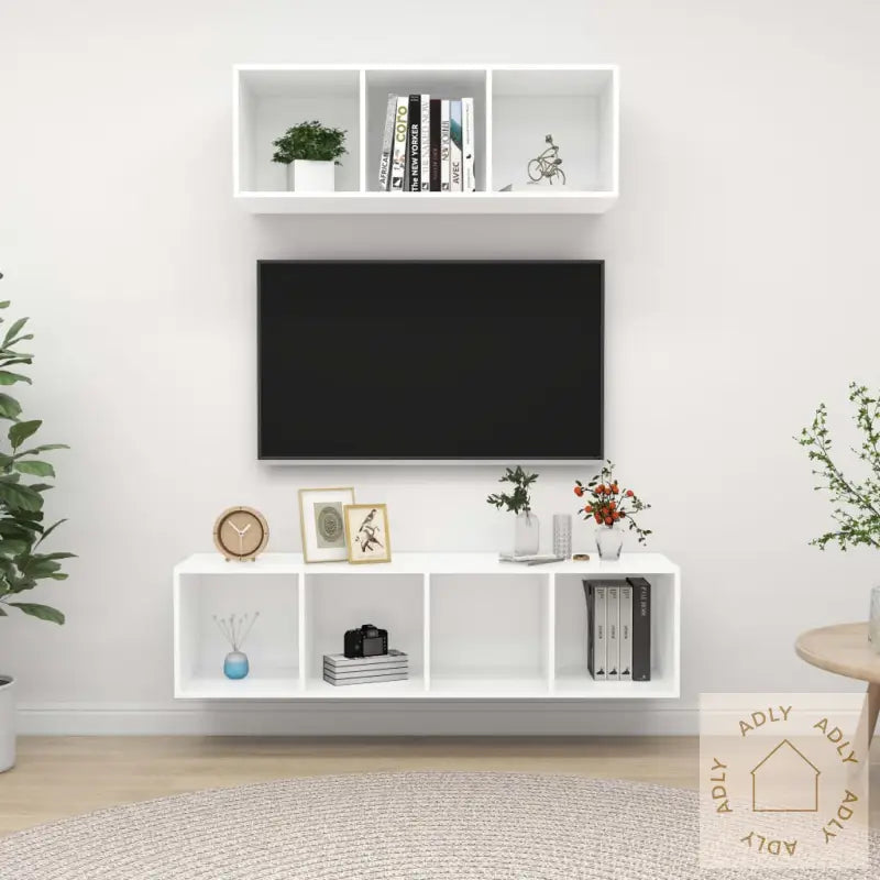 Dette vegghengte TV-benksettet har smarte oppbevaringsløsninger med flere rom der du enkelt kan organisere alt fra fjernkontroller til spillkonsoller eller andre dekorative gjenstander. Med sitt stilrene design er møbelsettet både praktisk og et elegant blikkfang i stua, enten du vil kombinere det med andre møbler til hjemmet eller la det skinne alene.