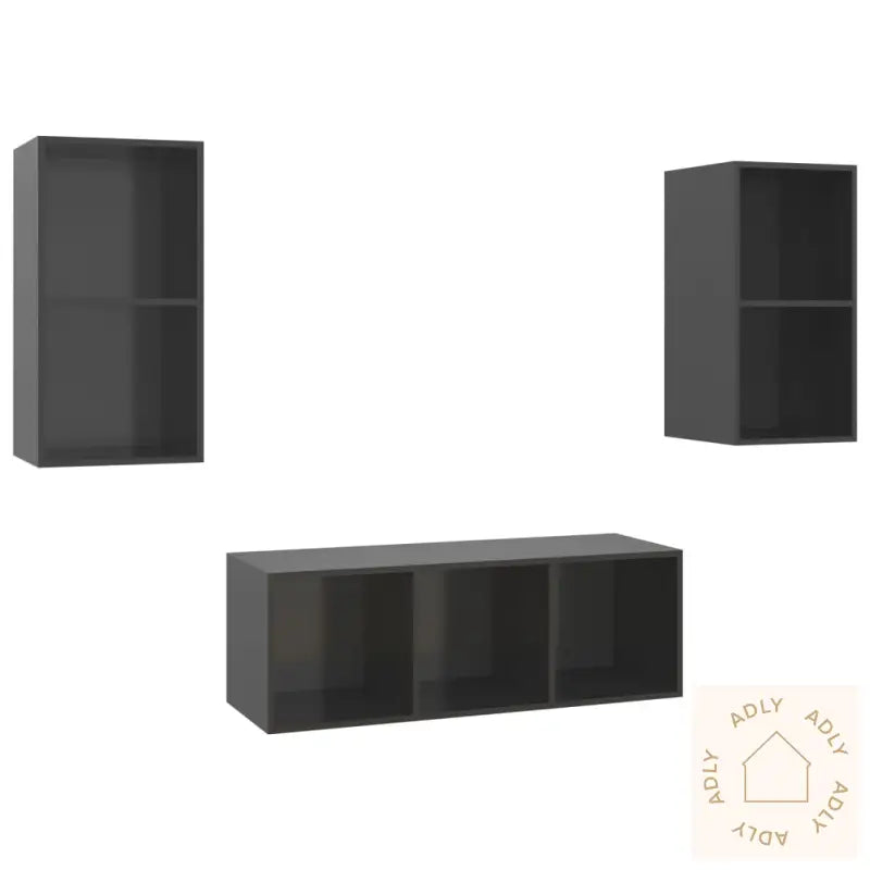 Farge: høyglans gråMateriale: konstruert treMontering kreves: jaLeveransen inneholder:2 x TV-benker: 37 x 37 x 72 cm (B x D x H)1 x TV-benk: 37 x 37 x 107 cm (B x D x H)