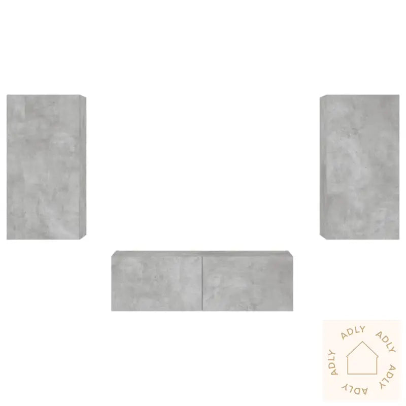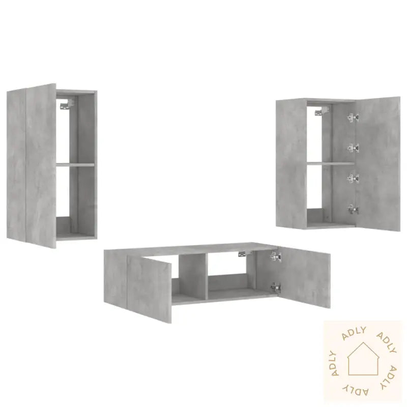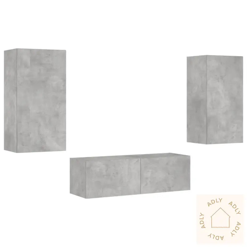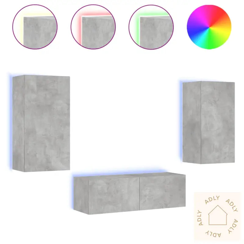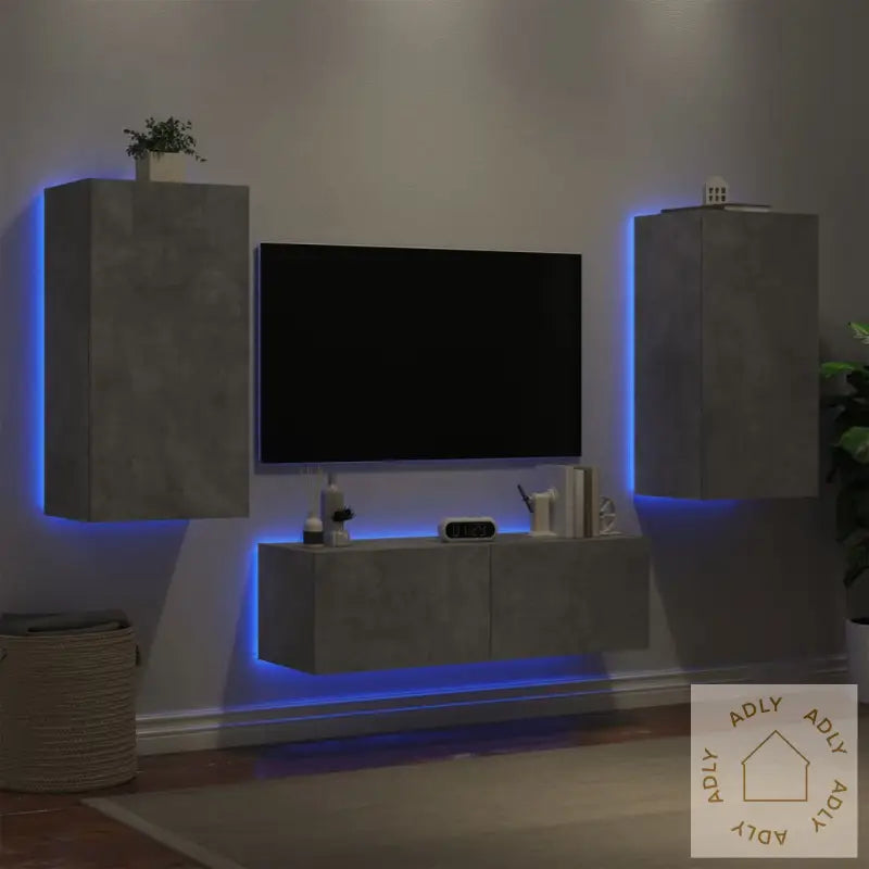 Skruer og plugger til veggmontering følger ikke med. Vi anbefaler å velge og bruke festemidler som passer veggtypen din. Ta kontakt med fagfolk hvis du er usikker; det gir trygg montering og sikrer at tv-benkene holder seg stabile på veggen. Følg bruksanvisningen nøye steg for steg.Produktet leveres med en USB-kontakt som må kobles til en 5V USB-strømkilde (denne er ikke inkludert). Velg en sertifisert strømkilde for trygg bruk av RGB LED-lysene.Farge: betonggråMateriale: konstruert treMontering kreves: jaLeveransen inneholder:2 x vegghengte TV-benker: 40,5 x 35 x 80 cm (B x D x H)1 x vegghengt TV-benk: 100 x 35 x 31 cm (B x D x H)