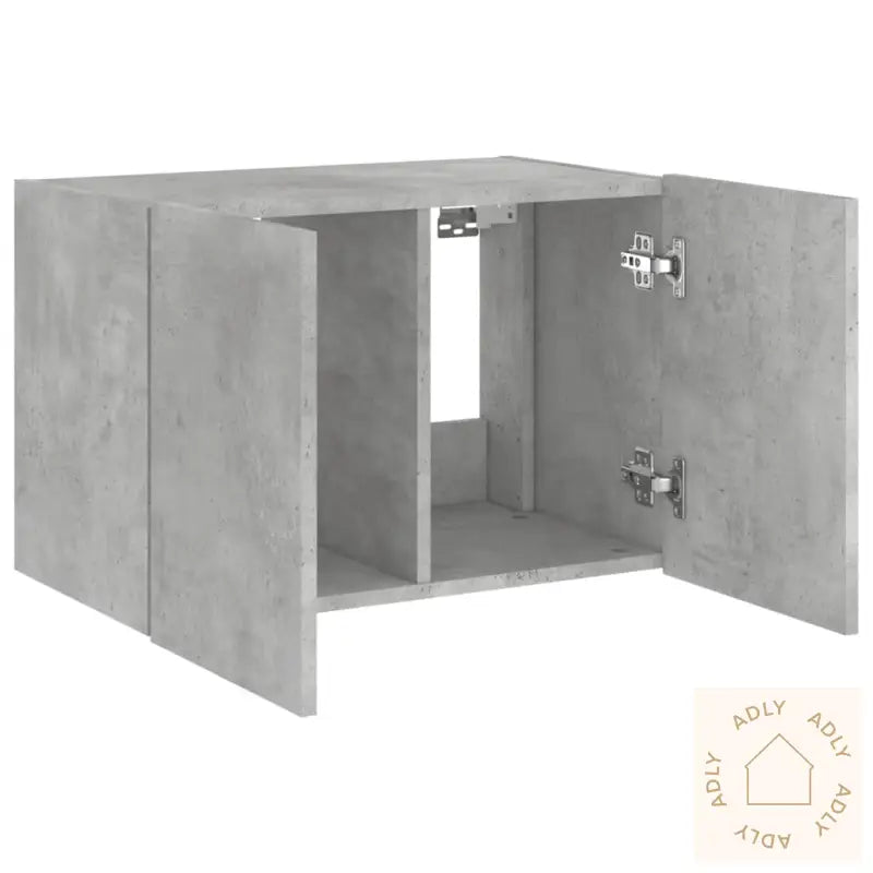 Skruer og plugger til veggmontering følger ikke med. Velg festemidler som passer til din veggtype, og spør en fagperson om du er usikker.Produktet har USB-kontakt for strøm til RGB LED-lysene (krever 5V USB-strøm, ikke inkludert).Farge: Betonggrå – et moderne valg som passer med andre møbler til hjemmet.Materiale: Konstruert treMål: 60 x 35 x 41 cm (B x D x H)Mål rom: 28 x 35 x 37 cm (B x D x H)Montering kreves: Ja