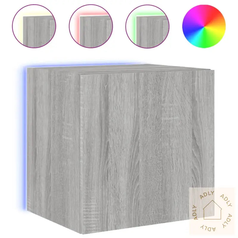 Skruer og plugger til veggmontering følger ikke med. Vi anbefaler å bruke festemidler som passer din veggtype – spør gjerne en fagperson hvis du er i tvil. Husk å følge monteringsanvisningen nøye.Produktet leveres med USB-kontakt. Du trenger en sertifisert 5V USB-strømkilde (ikke inkludert) for å bruke RGB LED-lys-funksjonen.Farge: Grå sonomaMateriale: Konstruert treMål: 40,5 x 35 x 40 cm (B x D x H)Montering kreves: JaLeveransen inneholder:2 x veggmonterte TV-benker