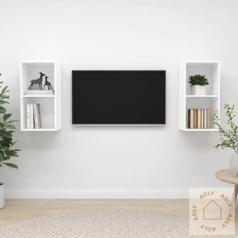 Dette praktiske settet med to veggmonterte TV-benker gir deg rikelig med oppbevaringsplass for alt fra TV-utstyr, fjernkontroller og konsoller til bøker eller dekorative gjenstander. Som smarte og plassbesparende møbler til hjemmet passer de perfekt inn i moderne stuer og kan virkelig bli et blikkfang i interiøret ditt.