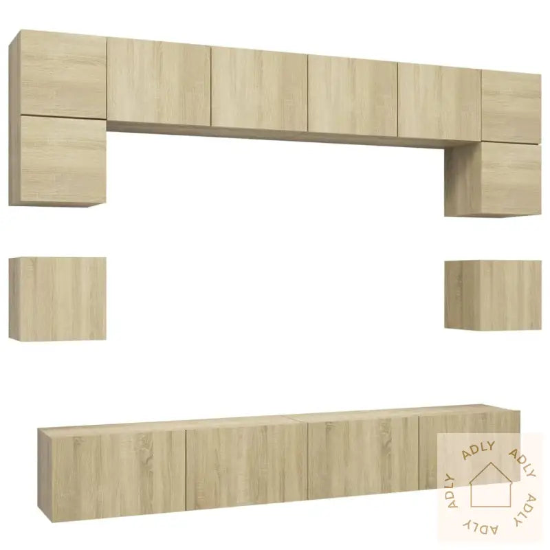 Dette vegghengte TV-benksettet i sonoma eik gir masse oppbevaringsplass, slik at du enkelt kan holde alt fra spillere og fjernkontroller til bøker og småting organisert. Det tar ikke opp gulvplass og gjør rommet både ryddigere og mer moderne – perfekt om du ser etter møbler til hjemmet som både er praktiske og dekorative.