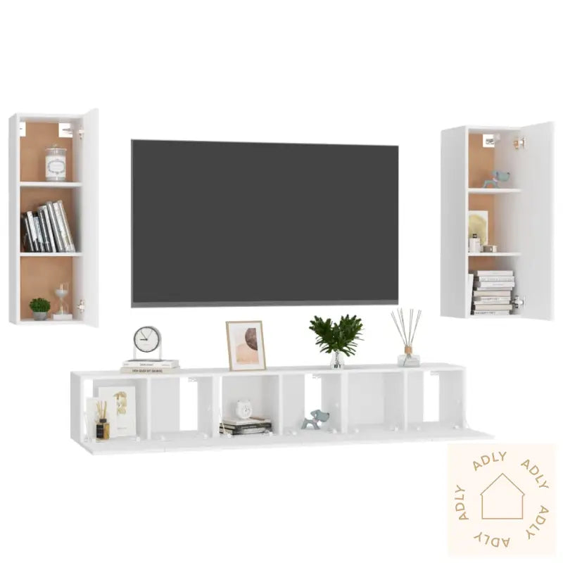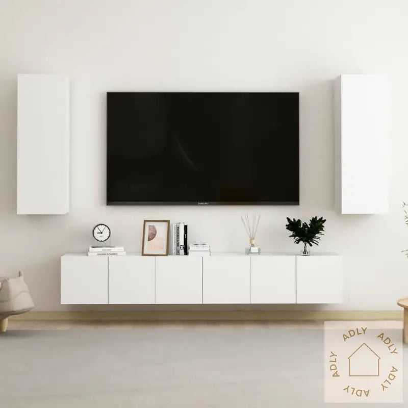 Dette solide TV-benksettet er designet som et naturlig samlingspunkt i stua, med et moderne, praktisk uttrykk som passer perfekt inn blant andre møbler til hjemmet. Den stilrene hvite fargen gjør at benkene enkelt kan kombineres med både nye og eksisterende møbler.