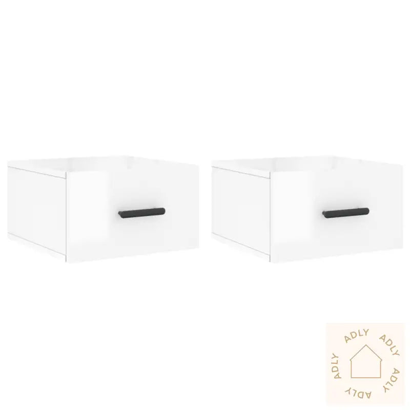 Skruer og plugger til veggmontering følger ikke med. Velg skruer og plugger som passer spesielt til dine vegger for best resultat. Spør gjerne en proff om du er usikker, og følg instruksjonene nøye.Farge: høyglans hvitMateriale: konstruert treMål: 35 x 35 x 20 cm (B x D x H)Montering kreves: jaLeveringen inkluderer:2 x vegghengte nattbordMed sitt moderne design og smarte oppbevaringsløsninger passer disse nattbordene perfekt sammen med resten av dine møbler til hjemmet. De kan enkelt kombineres med både innendørs og utendørs møbler for en helhetlig stil. Oppgrader rommet og skap en funksjonell atmosfære hvor dine favorittmøbler får komme til sin rett.
