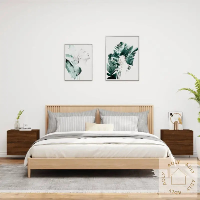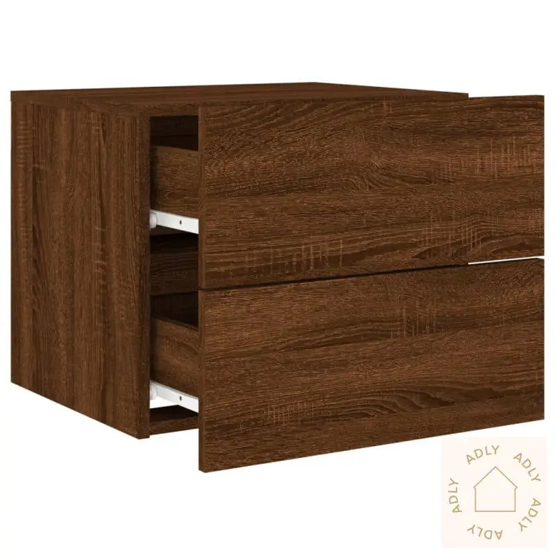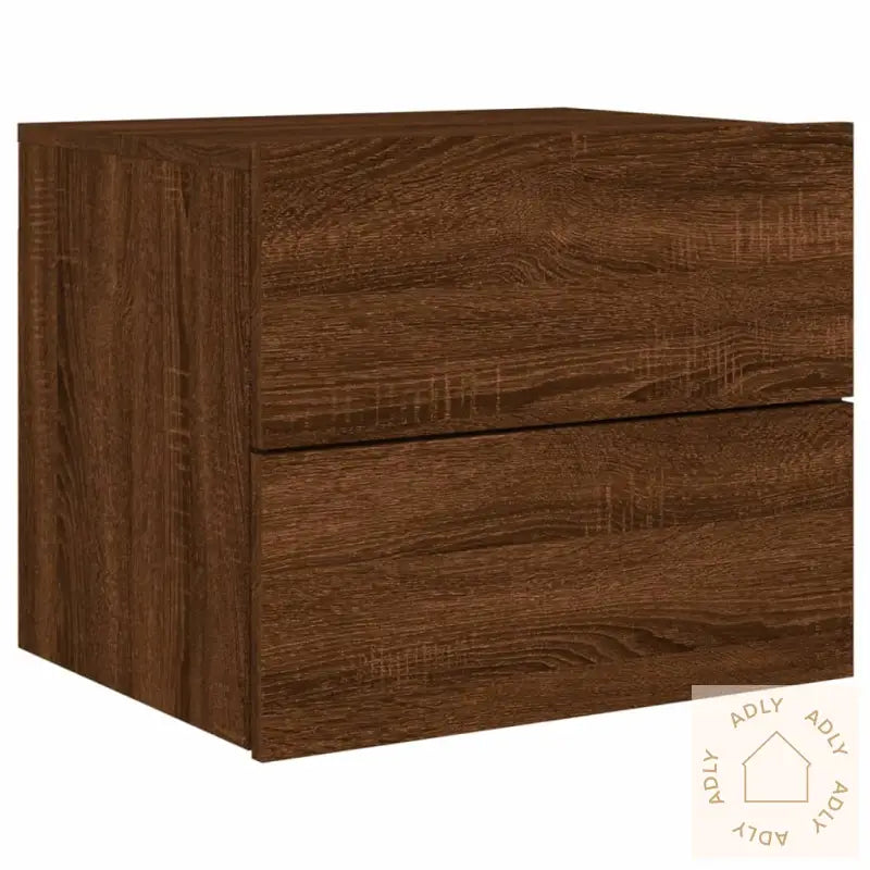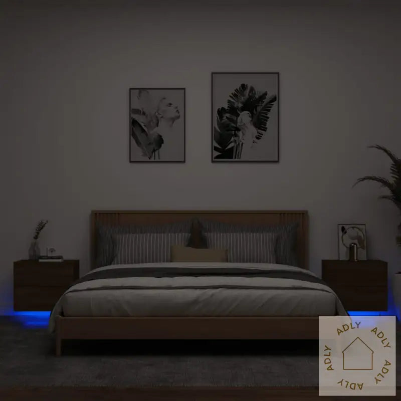 Slitesterkt materiale: Nattbordene er laget av konstruert tre med brun eik-finish, noe som gir et varmt og tidløst preg til rommet. Materialet er både robust og motstandsdyktig mot fuktighet, samtidig som overflaten er glatt og enkel å tørke av – helt topp for hverdagsbruk og møbler til hjemmet.RGB LED-lys: Det flytende skapet er utstyrt med moderne RGB LED-lys, som lar deg velge mellom ulike farger for å skape akkurat den stemningen du ønsker. Still inn lyset så det skifter automatisk, eller velg din favorittfarge manuelt – perfekt både som nattbelysning og for et ekstra moderne preg på soverommet.Veggmontert design: Med sitt vegghengte design gir disse nattbordene ekstra lagringsplass uten å ta opp gulvplass. Det bidrar til et luftigere uttrykk, gjør rengjøring under nattbordet superenkelt og gir mer plass til oppbevaring der du trenger det mest.Flerfunksjonelt skap: De veggmonterte nattbordene fungerer som dekorative hyller hvor du kan legge fra deg alt fra bøker til pyntegjenstander og personlige småting. Slik blir tomme veggflater nyttig og stilig utnyttet, og nattbordene sklir rett inn blant andre moderne møbler til hjemmet.Godt å vite: