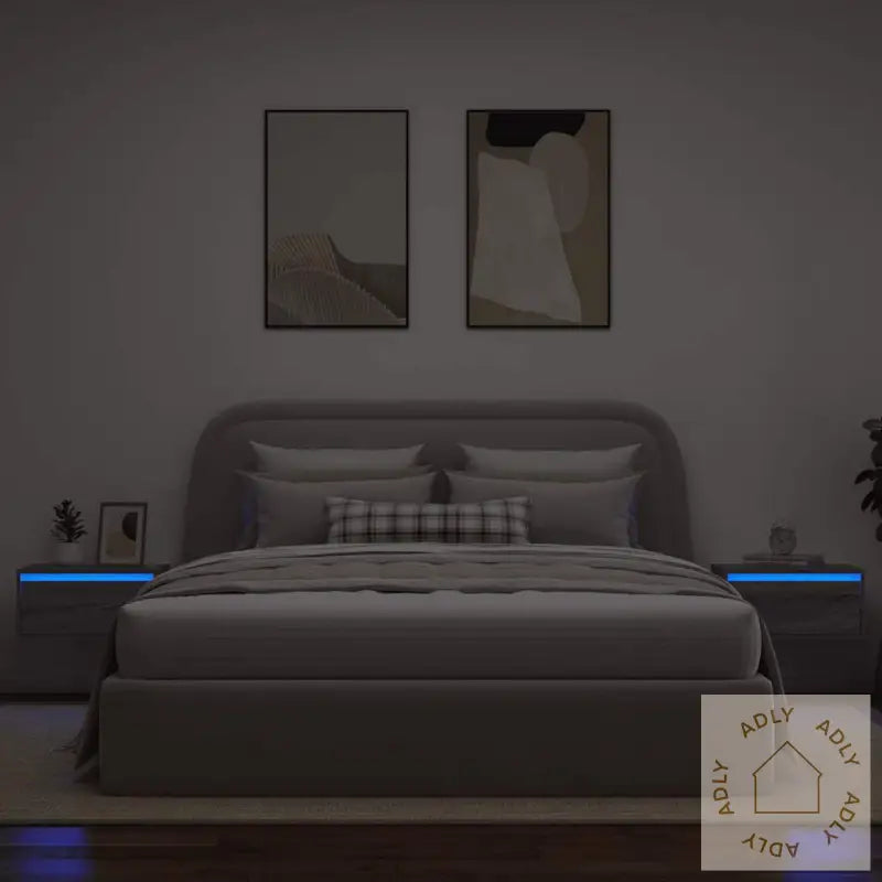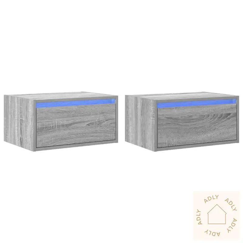 Skruer og plugger for å feste nattbordene til veggen følger ikke med. Velg alltid skruer og plugger som passer til din veggtype – er du usikker, anbefaler vi å snakke med en fagperson. Husk å følge veiledningen nøye for sikker og enkel montering.Nattbordene har USB-kontakt og krever en sertifisert 5V USB-strømkilde (ikke inkludert) for LED-lysene.Farge: grå sonomaMateriale: konstruert treSamlet mål: 51 x 35,5 x 25 cm (B x D x H)Mål skuff: 47 x 28,5 x 19 cm (B x D x H)Montering kreves: jaLeveransen inneholder:2 x nattbordDisse nattbordene er et smart valg hvis du ønsker praktisk oppbevaring, stilig design og litt ekstra atmosfære på soverommet. Perfekt for å komplettere møbler til hjemmet – og en funksjonell favoritt, enten du elsker moderne eller klassisk stil.