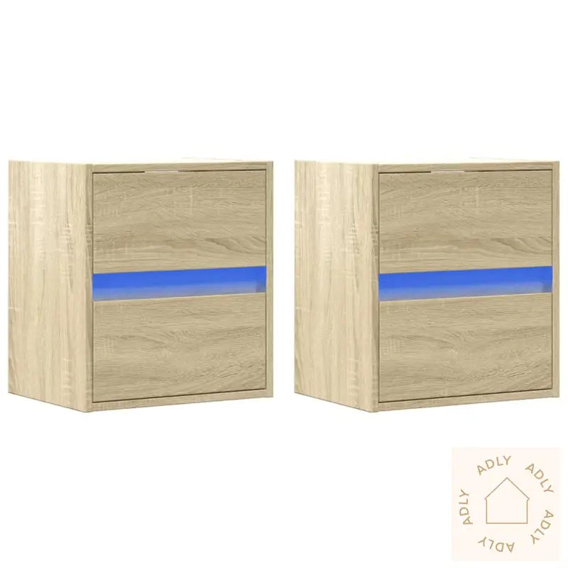 Oppgrader soverommet med disse moderne vegghengte nattbordene i sonoma eik, komplett med justerbare LED-lys! Disse funksjonelle møblene gir en stilfull og smart touch til rommet ditt samtidig som de er lette å kombinere med andre møbler til hjemmet.