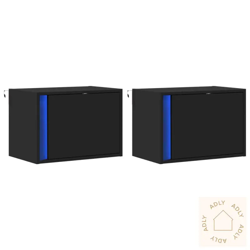 Skruer og plugger for montering på innvendig vegg følger ikke med. Velg løsninger som passer dine vegger for trygg og sikker montering – spør gjerne en fagperson om du er usikker. Følg instruksjonene nøye for best resultat.Nattbordet leveres med en USB-kontakt for strøm til LED-lysene. Husk at du trenger en sertifisert 5V USB-strømkilde (ikke inkludert) for å bruke lyset.Farge: svartMateriale: konstruert treMål (hver): 50 x 31 x 35 cm (L x B x H)Antall skuffer (hver): 1LED-lys inkludertMontering krevesLeveringen inneholder:2 x vegghengte nattbord