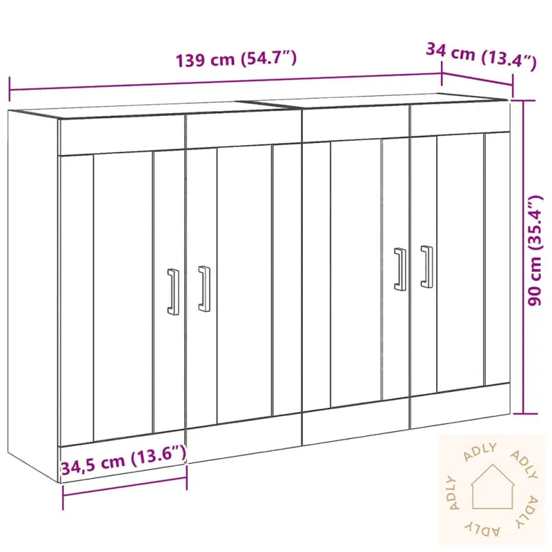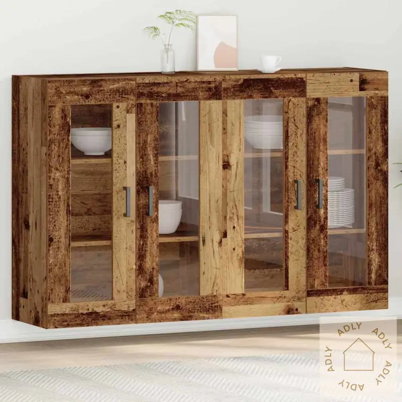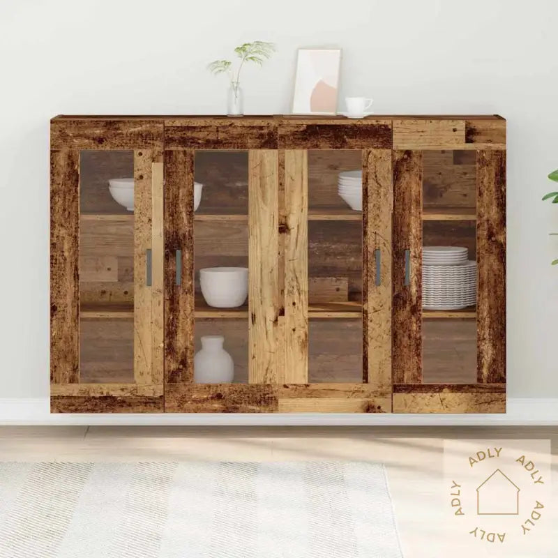 De lekre glassdørene lar deg vise fram favorittserviset eller dekorasjoner, og skaper et eksklusivt preg i hjemmet. Dette gir et åpent uttrykk, samtidig som tingene dine står sikkert bak dørene.Åtte rom gir god plass til alt du trenger – fra servise og bestikk til vaser og små detaljer. Organisationen blir superenkel!Skapet er bygget i solid, gjenvunnet tre, så det er både robust og miljøvennlig. Du får møbler som varer lenge og samtidig gjør noe godt for miljøet.Med fleksible hyller og moderne ramme kan du tilpasse innredningen akkurat slik du vil ha det – og alltid holde alt på stell og ryddig.Med mål på 139 x 34 x 90 cm får du rikelig med funksjonalitet uten at skapet tar opp for mye plass. Passer til spisestuer i de fleste størrelser – perfekt om du vil utnytte plassen best mulig.Antall varer: 2Farge: BrunForm: RektangulærMateriale: Konstruert treFinish: TeksturertInnendørs/Utendørs: Kun innendørsAntall dører: 4Deksel inkludert: NeiRom: SpisestueOverflatehøyde: 2 cmSommerbevegelser: NeiMerke: Levering inkluderer: BuffetMontering nødvendig: JaAnbefalt antall personer for montering: 2