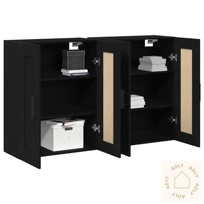 Antall elementer: 2Farge: SvartForm: RektangulærMateriale: Konstruert tre gir stabilitet og lang levetidFinish: Matt, for et tidløst og elegant utseendeInnendørs/Utenfor: Kun for bruk innendørsAntall dører: 4 – perfekt for å skjule rot og holde spisestuen ryddigCover inkludert: NeiIdeell for: Spisestue, men passer også inn i andre oppholdsrom for smart oppbevaringMål: 160 x 34 x 90 cm (L x B x H), som gir god plass uten å ta for mye av rommetOverflatemål: 2 cmHengsler: NeiLevering inkluderer: 2 buffeter, slik at du får flere muligheter til oppbevaringMontering kreves: Ja – vi anbefaler at to personer monterer for enkel og trygg installasjonDisse vegghengte skapene gir deg fleksibel oppbeving og passer perfekt blant dine møbler til hjemmet. Skapene er et funksjonelt valg for den som ønsker å maksimere plassen og samtidig løfte interiøret med moderne design. Gjør spisestuen både ryddigere og mer innbydende med vidaXL vegghengte skap!