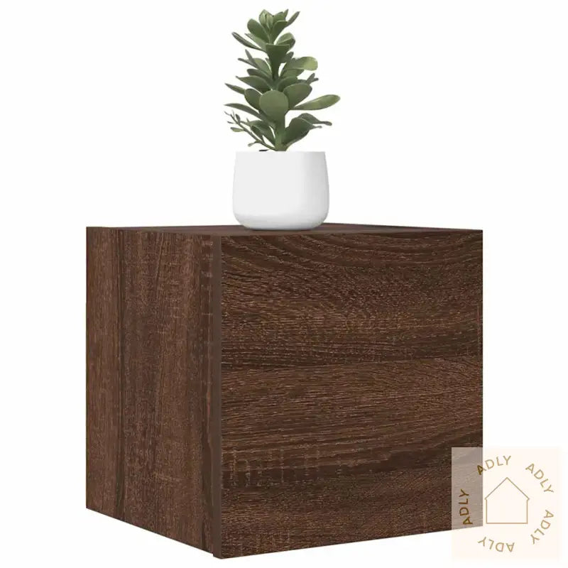 Premium materiale: Det konstruerte treverket er kjent for sin eksepsjonelle kvalitet, glatte overflate og robuste egenskaper. Dette gir TV-benken styrke, stabilitet og høy motstand mot fuktighet – ideelt for aktive hverdager og nordiske hjem.Dekorativt design: Det vegghengte skapet gir et moderne preg og utnytter plassen på veggen på en smart måte, noe som virkelig fremhever hjemmets personlige stil. Modellen i brun eik gjør det enkelt å matche TV-benkene med andre møbler.Rikelig med oppbevaringsplass: Med to romslige rom får du rikelig plass til å organisere alt fra nøkler, notatbøker og penner, til fjernkontroller og annet smått tilbehør du vil ha lett tilgjengelig ved TV-en. Du får enklere et ryddig hjemmemiljø!Enkel å rengjøre: Med sin glatte overflate er de flytende skapene enkle å holde rene – bare tørk over med en fuktig klut for rask og enkel rengjøring.Merk: