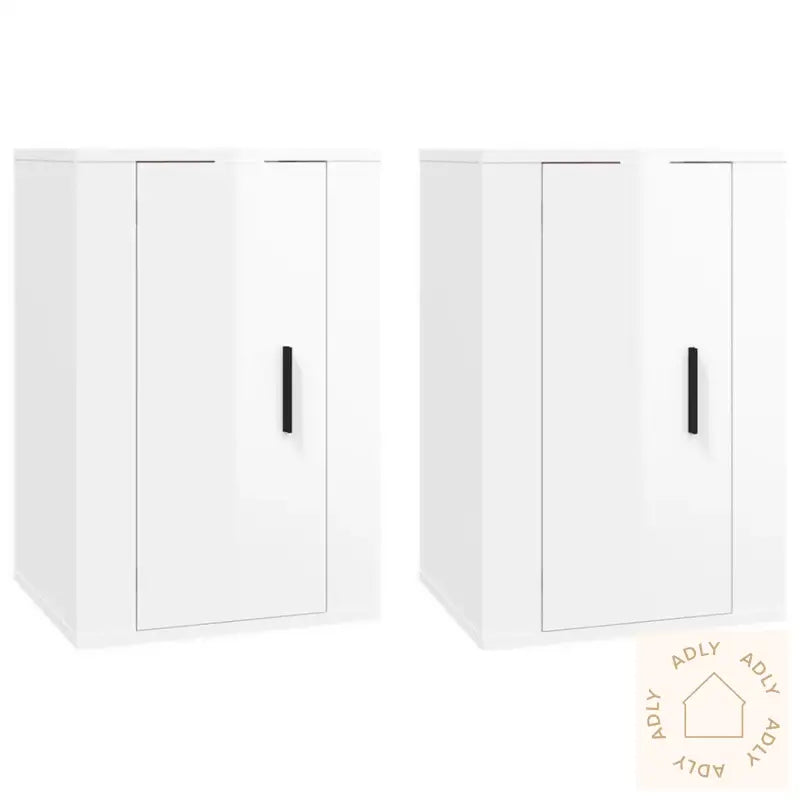 Skruer og plugger til innfesting i vegg følger ikke med. Velg festemidler som egner seg for akkurat din veggtype, og søk gjerne profesjonell hjelp om du er usikker. Følg alltid monteringsanvisningen nøye.Hver pakke leveres med en tydelig monteringsveiledning for enkel og trygg montering.Farge: høyglans hvitMateriale: konstruert treMål (hver): 40 x 34,5 x 60 cm (B x D x H)Maksimal lastekapasitet (totalt): 60 kgLeveransen inneholder:2 x vegghengte TV-benker