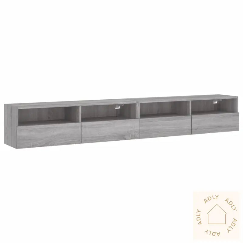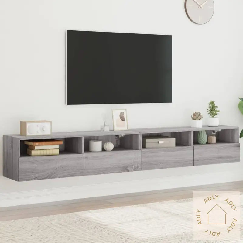 Slitesterkt materiale: Laget av konstruert tre av høy kvalitet, har disse TV-benkenes overflate en glatt finish som gjør dem lette å rengjøre. Materialet gir også styrke og lang levetid, samt stabilitet og god motstand mot fuktighet, noe som gjør dette til solide møbler som varer.Rikelig med lagringsplass: Den flytende TV-enheten tilbyr to åpne hyller samt to lukkede rom med dører, slik at du enkelt kan holde ting som bøker, DVD-er, fjernkontroller eller magasiner organisert og lett tilgjengelig. Perfekt om du ønsker rene flater og mindre synlig rot rundt TV-en!Veggmontert design: Med en veggmontert konstruksjon frigjør disse mediaenhetene verdifull gulvplass. Det gir deg større fleksibilitet ved plassering av møbler, og hjelper deg å skape et luftig, ryddig og moderne inntrykk hjemme.Møblene er derfor et ideelt valg for deg som vil kombinere stil, funksjon og orden i hjemmet ditt – og de kompletterer andre møbler og utendørsmøbler sømløst dersom du ønsker en helhetlig stemning i bolig eller hytte.