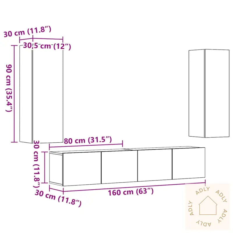 Skruer og plugger til veggmontering følger ikke med, så husk å bruke festemidler som passer akkurat til din veggtype. Ved usikkerhet, spør gjerne en fagperson. Les alltid monteringsanvisningen nøye for best mulig resultat.Farge: Artisan eikMateriale: Konstruert treMål veggmontert TV-skap (S): 80 x 30 x 30 cm (B x D x H)Mål veggmontert TV-skap (L): 30,5 x 30 x 90 cm (B x D x H)Maks vektkapasitet (totalt): 60 kgMontering kreves: jaLeveransen inneholder:4 x vegghengt TV-skap