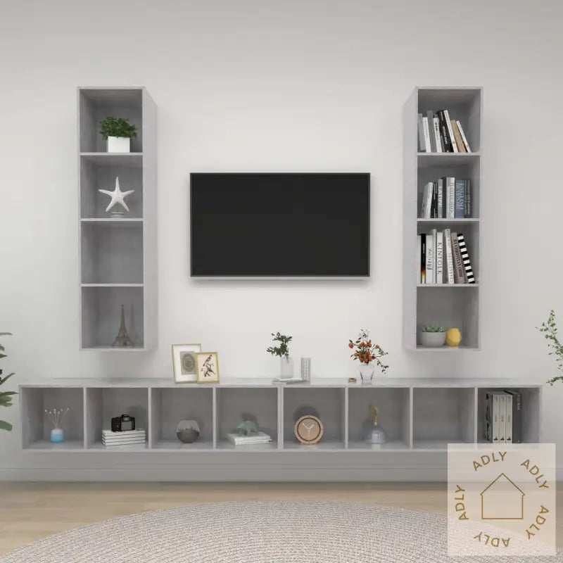 Disse stereoskapene er dessuten svært lette å rengjøre – du tørker dem bare av med en fuktig klut. Dette gjør dem ekstra praktiske i en travel hverdag. De solide materialene og tidløse designet i betonggrå utførelse gjør at møblene passer inn i de fleste hjemmemiljøer, enten du kombinerer dem med andre møbler eller ønsker å gi rommet et moderne løft.