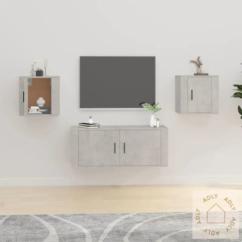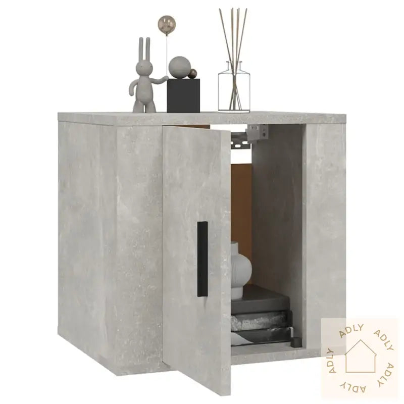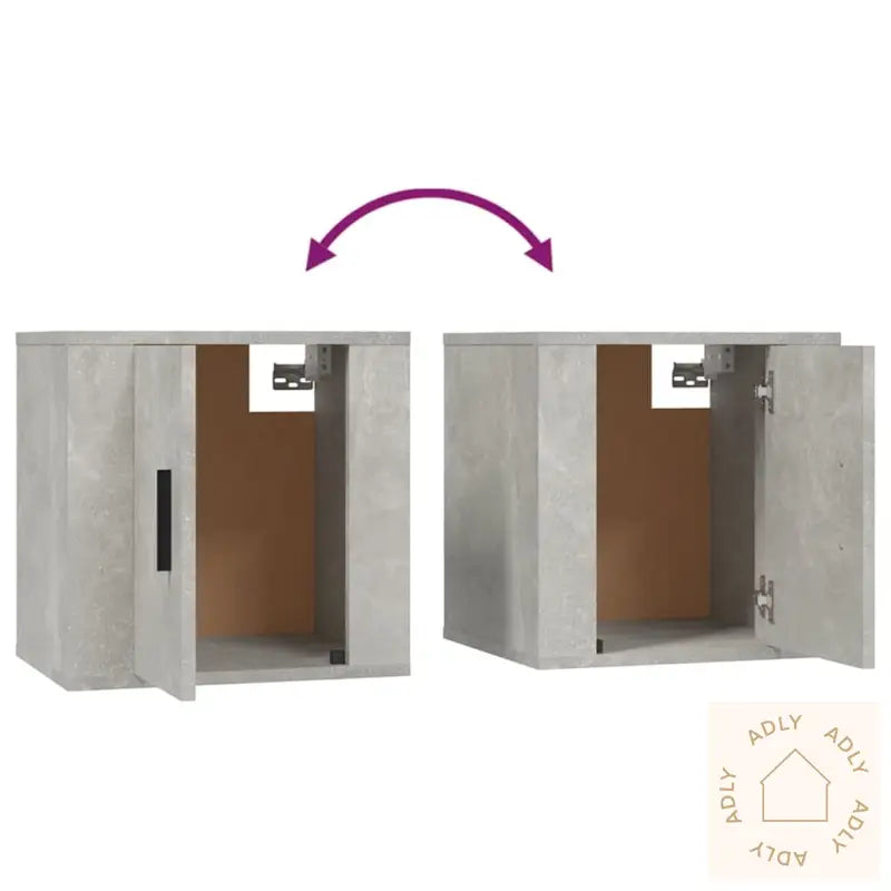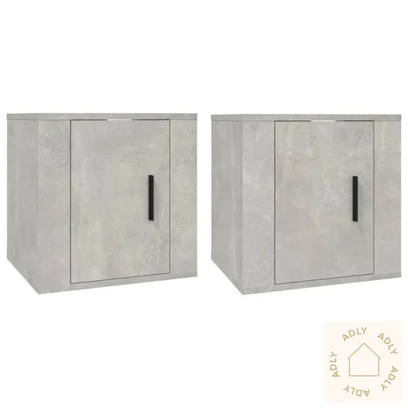 Skruer og plugger til innfesting i vegg er ikke inkludert, så sørg for å velge de som passer best for din veggtype når du monterer TV-benken. Ta kontakt med en fagperson ved usikkerhet, og følg monteringsinstruksjonen nøye.Alle produkter leveres med beskrivende monteringsveiledning for enkel og trygg montering hjemme.Farge: betonggrå – trendy og lett å matche med andre møbler og hagemøblerMateriale: konstruert treMål (hver): 40 x 34,5 x 40 cm (B x D x H)Maksimal lastekapasitet totalt: 60 kgDu får:2 x vegghengte TV-benker