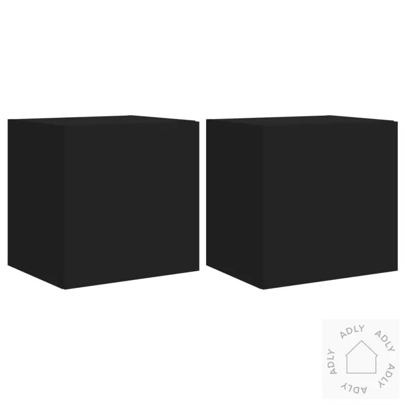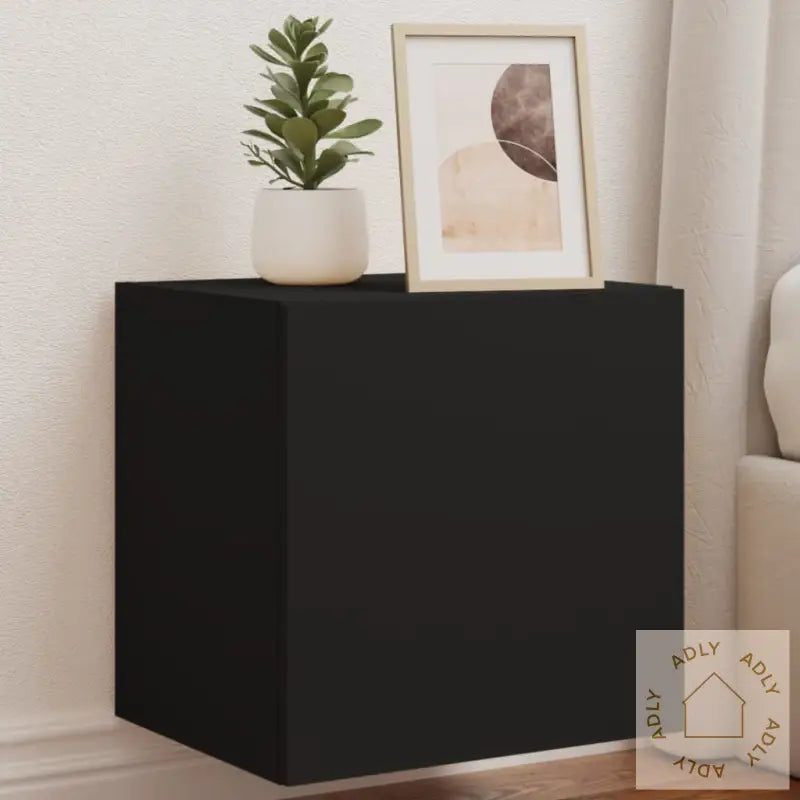 Skruer og plugger for veggmontering følger ikke med i pakken. Finn alltid riktige skruer og plugger til veggtypen din for trygg montering. Er du usikker, snakk med en profesjonell og følg instruksjonene nøye.Produktet har USB-kontakt for de innebygde RGB LED-lysene, og du trenger en sertifisert 5V USB-strømkilde (ikke inkludert) for å bruke lysfunksjonen.Farge: svartMateriale: konstruert treMål: 40,5 x 35 x 40 cm (B x D x H)Montering kreves: jaLeveransen inneholder:2 x veggmonterte TV-benker