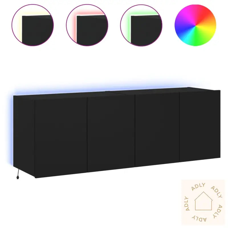 Skruer og plugger til veggmontering følger ikke med. Husk å bruke festemidler som passer til nettopp dine vegger. Er du usikker anbefales det å kontakte profesjonell hjelp, og alltid følge instruksjonene nøye ved montering.RGB LED-lysene har USB-kontakt som trenger en sertifisert 5V USB-strømkilde (ikke inkludert).Farge: svartMateriale: konstruert treMål per enhet: 60 x 35 x 41 cm (B x D x H)Mål på hvert rom: 28 x 35 x 37 cm (B x D x H)Montering krevesDu får:2 x veggmonterte TV-benker