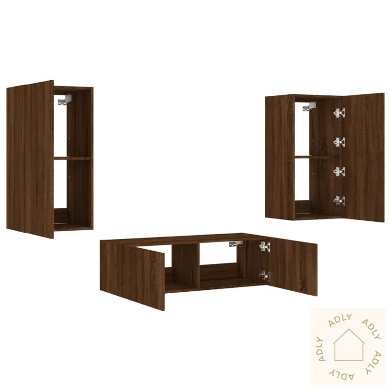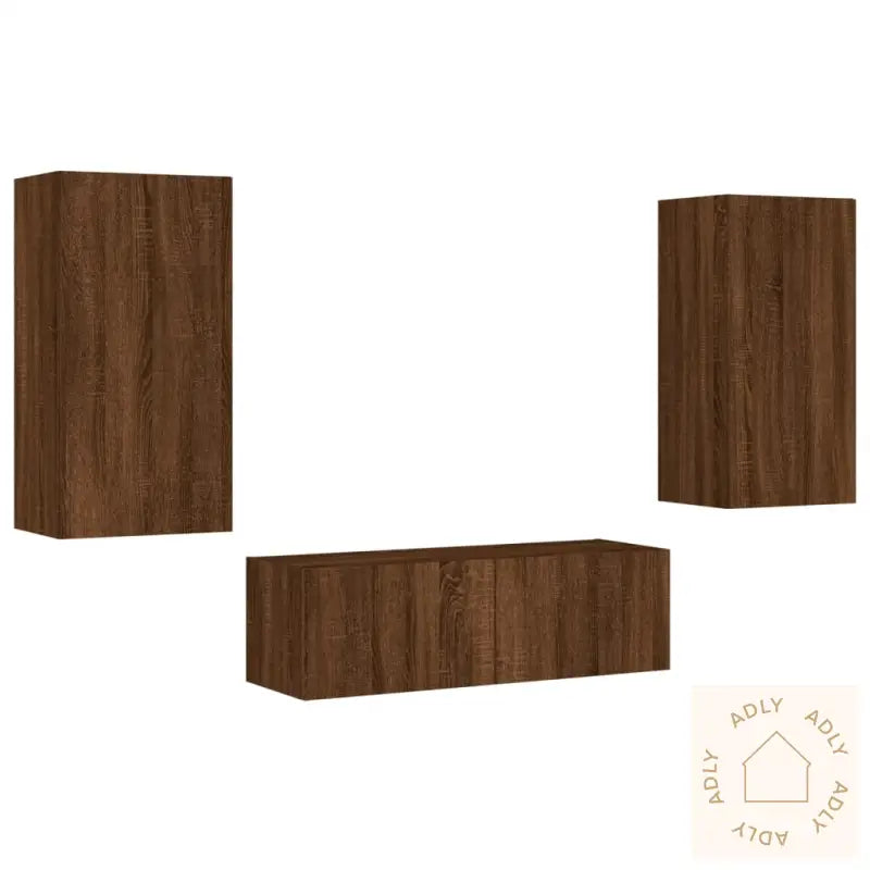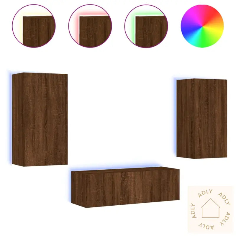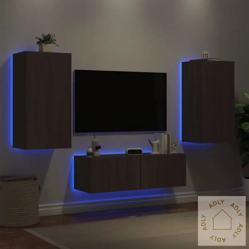 Disse vegghengte TV-benkene med RGB LED-lys er en smart løsning for deg som vil maksimere plassen i hjemmet og få et moderne uttrykk samtidig som gulvet holdes fritt og ryddig. Med sitt stilrene design i brun eik passer de enkelt inn sammen med både eksisterende møbler til hjemmet og annen innredning.