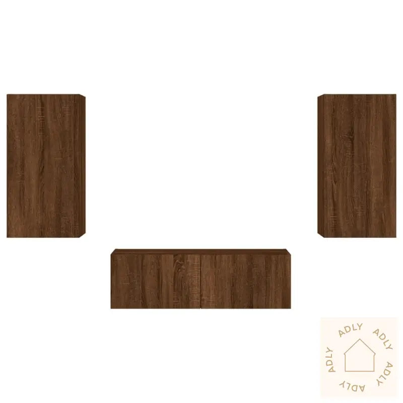 Skruer og plugger for veggmontering medfølger ikke. Velg riktige skruer og plugger ut fra veggtypen hjemme hos deg. Usikker? Spør en profesjonell for å være trygg på resultatet. Følg monteringsanvisningen nøye.Produktet har en USB-kontakt og trenger en sertifisert 5V USB-strømkilde (ikke inkludert) for RGB LED-lysene.Farge: Brun eikMateriale: Konstruert treMontering nødvendigLeveransen inneholder:2 x vegghengte TV-benker: 40,5 x 35 x 80 cm (B x D x H)1 x vegghengt TV-benk: 100 x 35 x 31 cm (B x D x H)