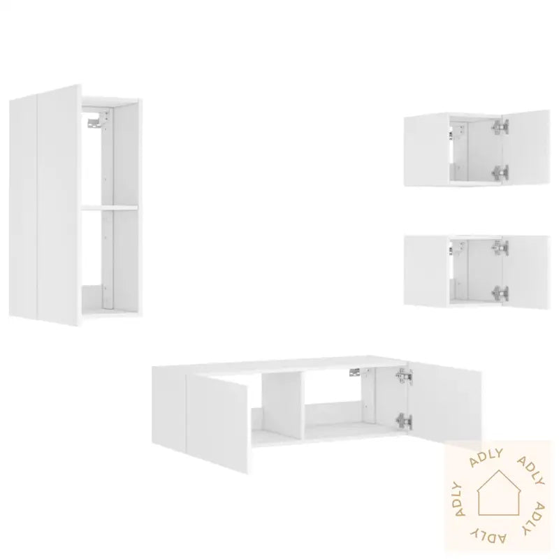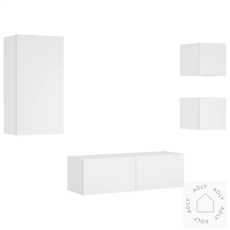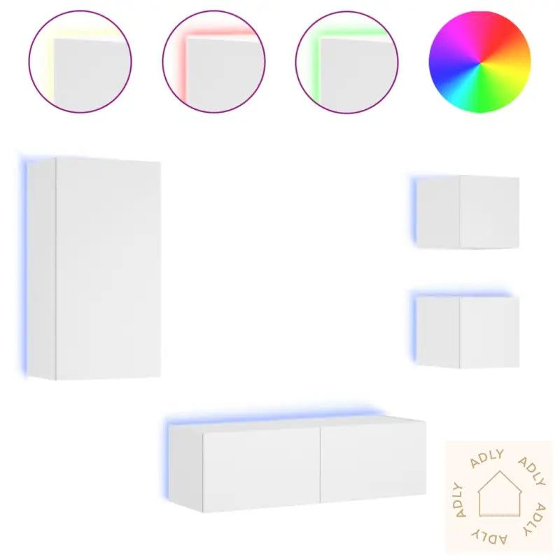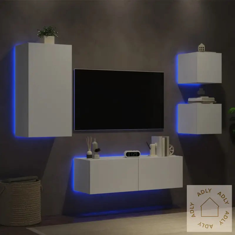 Skruer og plugger for veggmontering følger ikke med. Velg alltid riktig monteringstilbehør til din veggtype. Er du usikker, snakk med en fagperson og følg instruksjonene nøye.Hver tv-benk inkluderer en USB-kontakt til RGB LED-lysene. Disse trenger en sertifisert 5V USB-strømkilde (følger ikke med).Farge: hvitMateriale: konstruert treMontering kreves: jaLeveransen inneholder:2 x vegghengte TV-benker: 30,5 x 35 x 30 cm (B x D x H)1 x vegghengt TV-benk: 40,5 x 35 x 80 cm (B x D x H)1 x vegghengt TV-benk: 100 x 35 x 31 cm (B x D x H)
