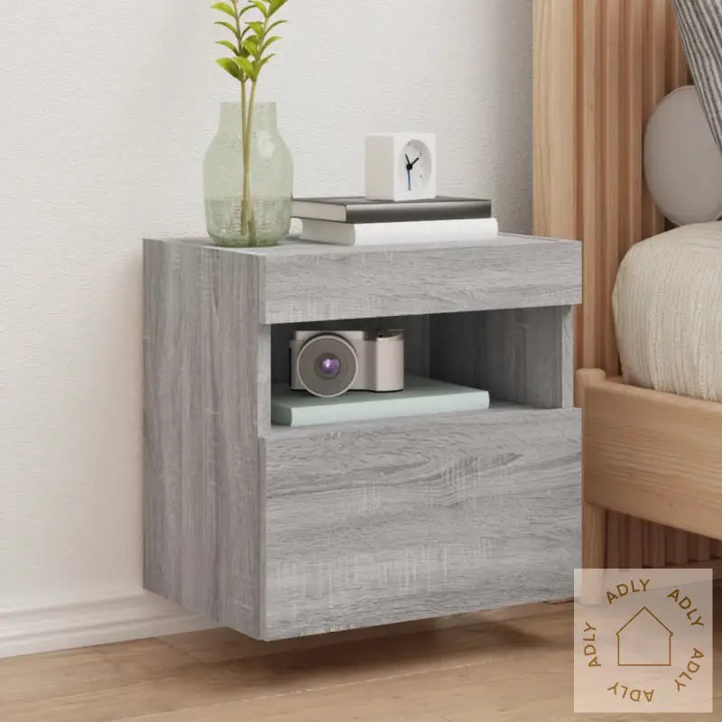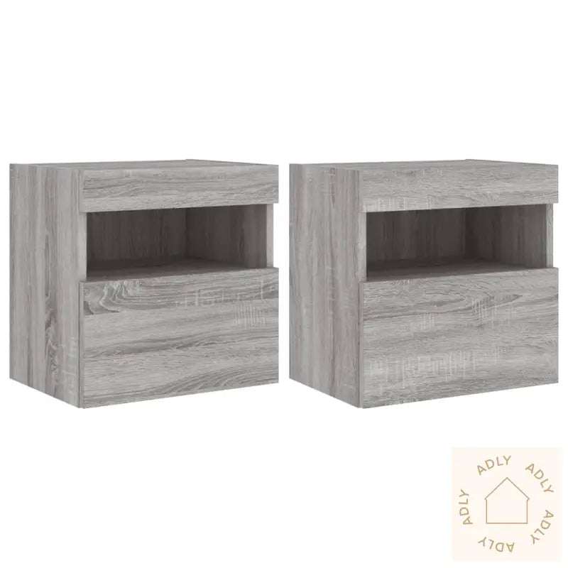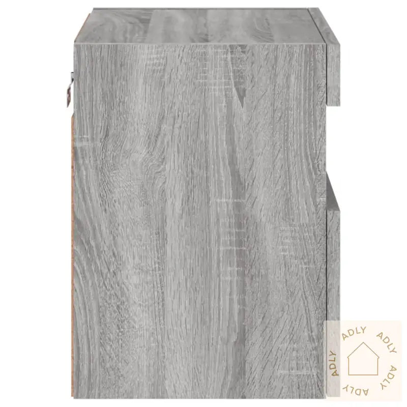 Slitesterkt materiale: Det konstruerte treverket i grå sonoma-finish har ikke bare en glatt overflate og flott utseende, men også høy styrke og stabilitet. Dette materialet er robust og motstandsdyktig mot både slitasje og fuktighet, så du får varige møbler som holder seg fine lenge – perfekt når du vil investere i god kvalitet til hjemmet.RGB LED-lys: Disse benkene er utstyrt med stilige RGB LED-lys som umiddelbart gir et løft til interiøret. Du kan enkelt tilpasse lysfargen med ulike menyer, og velge å la fargene endre seg automatisk for den rette stemningen. Enten du ser på TV eller bare vil ha et trendy blikkfang, gir RGB LED-lysene et moderne preg og gjør benkene ekstra attraktive i stue, soverom eller gamingrom.Rikelig med lagringsplass: Med en gjennomtenkt plassutnyttelse gir de vegghengte skapene deg god lagringsplass til alt fra bøker, DVD-er, magasiner og fjernkontroller. Hold det ryddig og ha favorittingene lett tilgjengelig, akkurat der du trenger dem. Disse skapene er også flotte å kombinere med andre bokhyller og stående hyller for å lage en komplett oppbevaringsvegg.Allsidig bruk: Du bestemmer hvordan skapet skal brukes! Om det er som moderne TV-benk, et vegghengt nattbord eller i kombinasjon med andre skap for unike løsninger – denne fleksibiliteten gjør at du lett kan tilpasse møblene etter behovene dine. Perfekt for deg som liker å endre eller utvide innredningen!Plassbesparende veggmontering: Takket være veggmontert design får du mer ledig gulvplass, noe som gir et luftig, rent og oversiktlig uttrykk i rommet. Praktisk når du ønsker å maksimere romfølelsen uten å gi avkall på funksjonalitet og oppbevaringsmuligheter. Det veggmonterte LED-skapet er dermed både praktisk og dekorativt, og gir deg gode muligheter til å skape en inspirerende stil hjemme.Godt å vite: