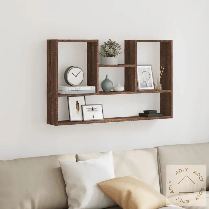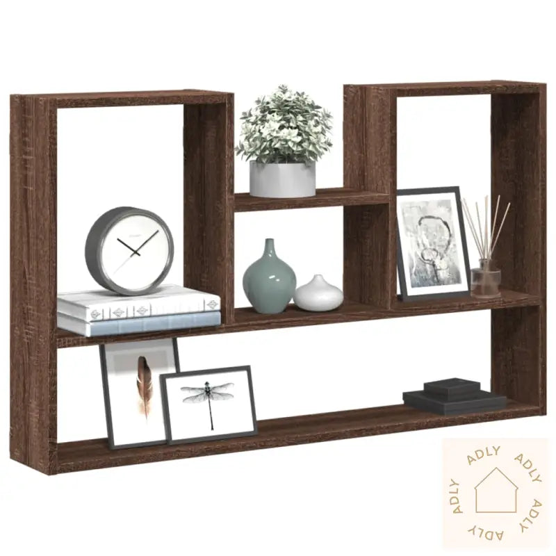 Maksimer plassen innendørs og skap en stilig atmosfære med denne moderne vegghyllen i brun eik – det perfekte tillegget til møbler til hjemmet ditt!