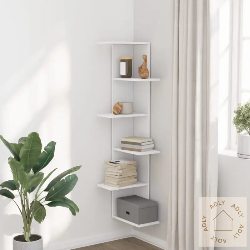 Lett å rengjøre: Stativet er laget av konstruert tre i høy kvalitet, noe som gir en robust overflate som tåler hverdagsbruk og samtidig er enkel å holde ren. Materialet gir både styrke, stabilitet og god motstand mot fuktighet – perfekt for norske hjem, uansett hvor du plasserer hyllen.Plassbesparende design: Hjørnehyllen monteres rett på veggen, så du får ekstra lagringsplass uten å miste verdifull gulvplass. Resultatet er et ryddig rom med smarte løsninger, uansett om du trenger bokhyller og stående hyller til bøker eller pent plasserer småting og dekorasjoner.Dekorativ og praktisk funksjon: Hyllens unike utforming gjør den både stilig og nyttig – det perfekte valget for deg som verdsetter moderne møbler og vil fremheve hjemmets personlighet. Sett frem dine favorittbøker, priser, planter eller pyntegjenstander og skap din egen vri på interiøret med denne hyllen.Godt å vite: