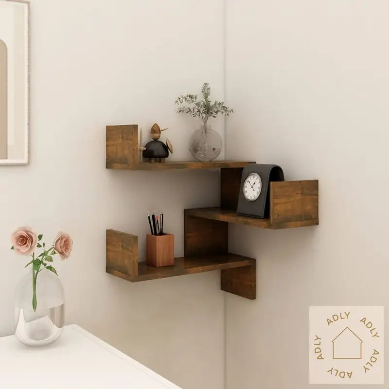 Lett å rengjøre: Laget av konstruert tre av høy kvalitet med en jevn overflate – enkelt å tørke av og vedlikeholde, samtidig som det gir styrke, stabilitet og god motstand mot fukt. Perfekt når du ønsker funksjonelle møbler som varer lenge.Plassbesparende design: Denne hjørnehyllen monteres direkte på veggen. Det gir deg ekstra oppbevaringsplass uten at den opptar gulvplassen – ideelt for små leiligheter, eller for deg som vil holde hjemmet ryddig og organisert.Dekorativ og praktisk: Kombiner lagringsplass med stil! Bruk vegghyllen til å vise frem favorittdekorasjonene dine, bøker, små planter eller priser – den unike formen gjør at hyllen fungerer både som et designelement og som oppbevaringsløsning blant dine andre møbler.Merk: