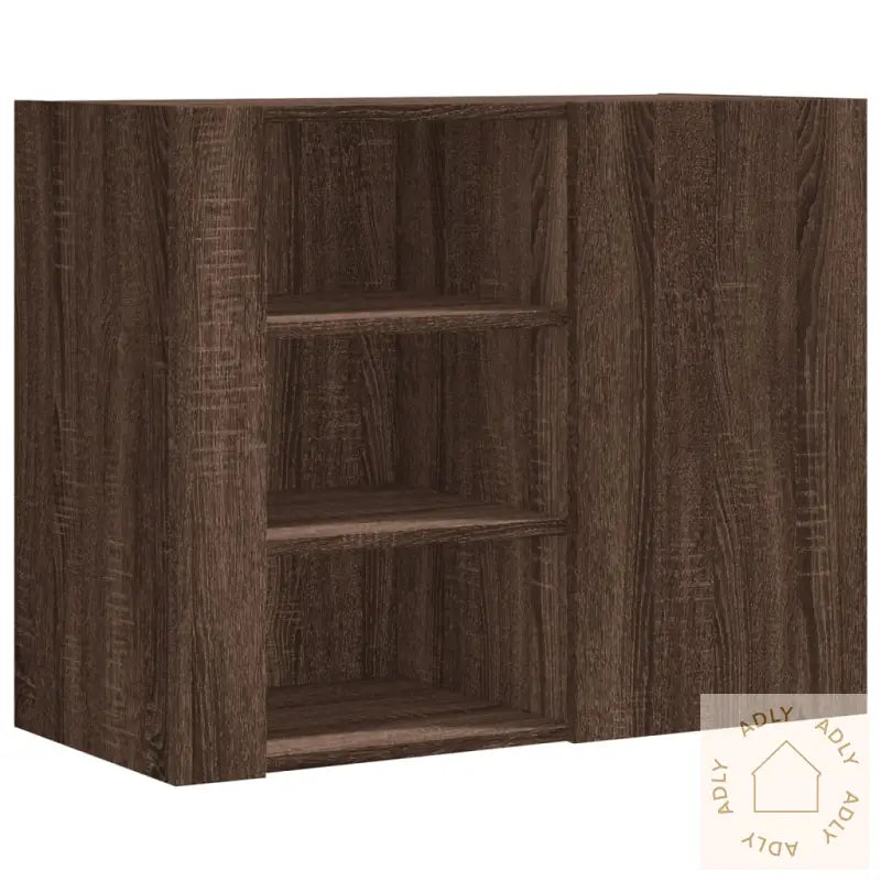 Skruer og plugger til veggoppheng følger ikke med. For best resultat anbefales det å bruke festemidler som er egnet for nettopp din veggtype. Er du usikker, bør du kontakte en fagperson. Husk å følge monteringsanvisningen nøye.Farge: brun eik – gir et naturlig og varmt uttrykk som enkelt matcher andre hagemøbler og interiørdetaljer.Materiale: konstruert treMål: 75 x 35 x 60 cm (L x B x H)Maksimal lastekapasitet (totalt): 80 kg – slik at du trygt kan oppbevare det meste du trenger.Maksimal lastekapasitet øverst: 30 kgMaksimal bæreevne laminat: 20 kgMaksimal lastekapasitet høyre skap: 40 kgEnkel montering kreves