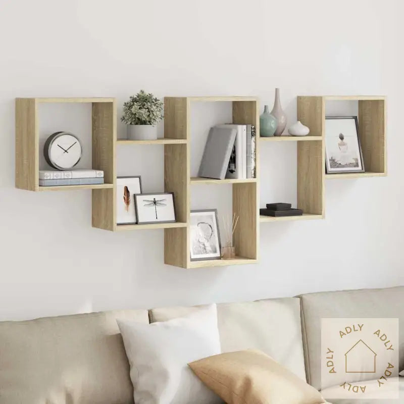 Maksimer din innvendige plass og gi veggen et moderne uttrykk med denne stilige vegghyllen i trendy sonoma eik! Den passer perfekt enten du trenger praktiske bokhyller eller ekstra oppbevaringsplass til møbler til hjemmet.