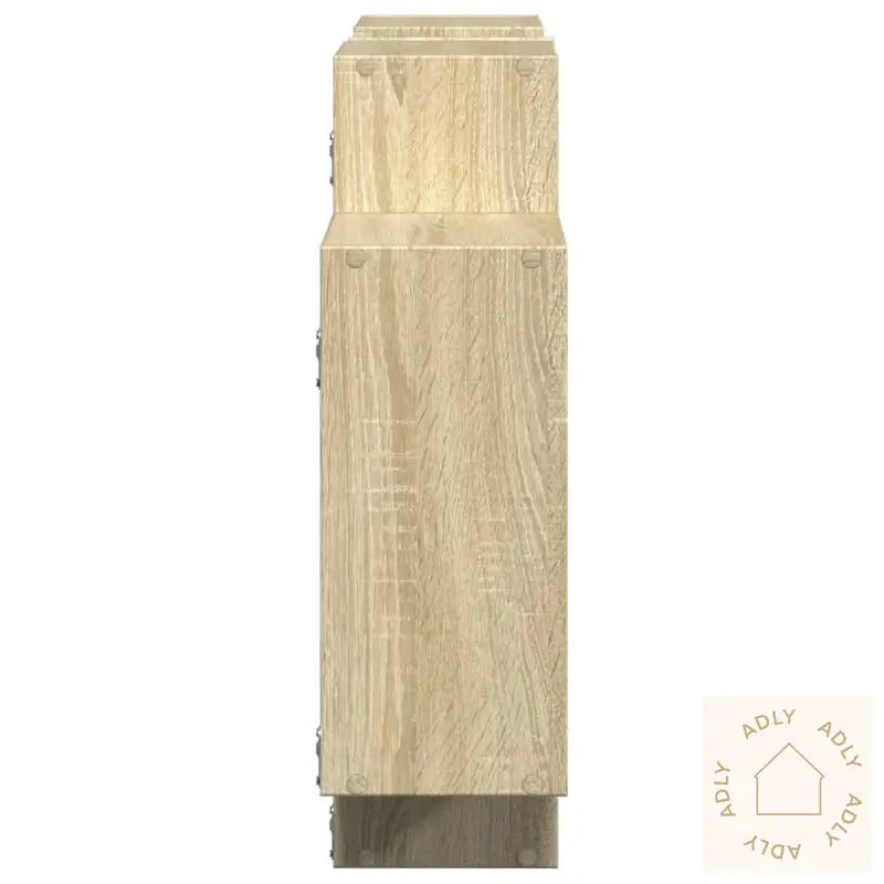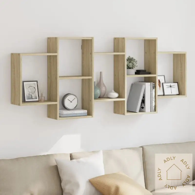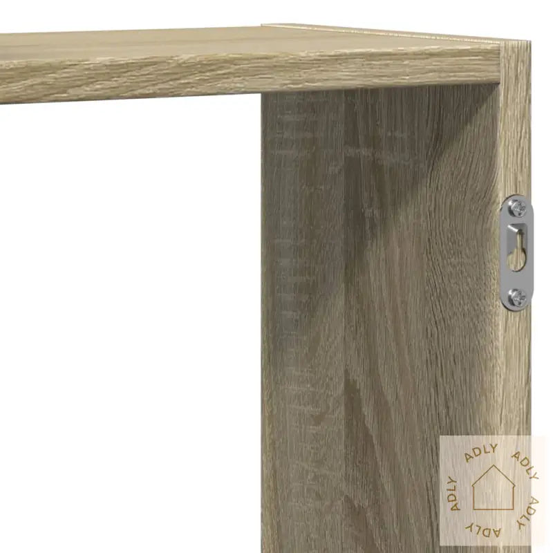 Skruer og plugger til montering følger ikke med. Finn festeutstyr som passer veggtypen, og spør gjerne en fagperson hvis du er usikker. Følg alltid monteringsinstruksjonene nøye.Farge: Sonoma eik – gir et lunt, naturlig utseende som passer fint sammen med både moderne hagemøbler og klassiske interiørstiler.Materiale: Konstruert treMål: 104 x 15 x 49 cm (B x D x H)Maksimal lastekapasitet (totalt): 30 kgMaksimal lastekapasitet (per lag): 5 kgMontering kreves: Ja