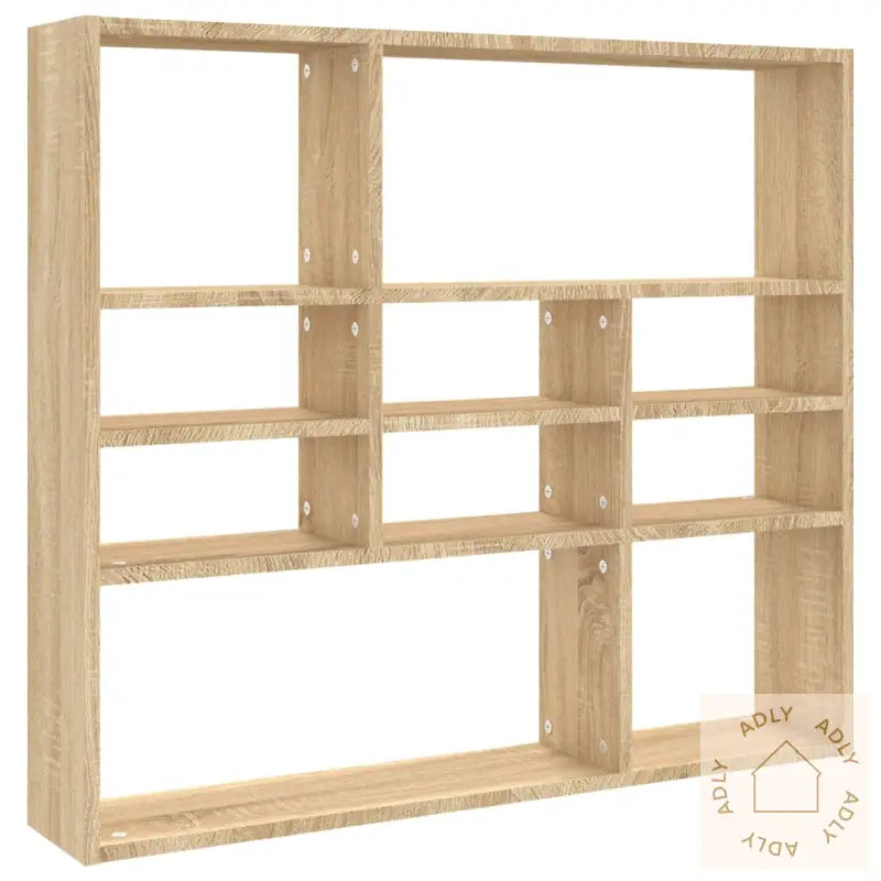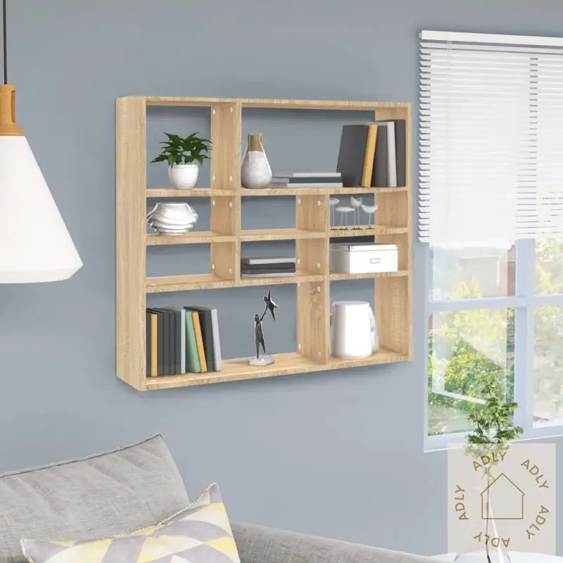 Hyllen er veggmontert og laget av konstruert tre i fargen sonoma eik, noe som gir et naturlig og tidsriktig uttrykk. Den robuste konstruksjonen sørger for at hyllen er både solid og holdbar, slik at du får glede av den i mange år fremover. Med 10 åpne rom får du god plass til å vise fram bøker, favorittsamleobjekter, personlige bilder, priser, potteplanter eller andre stilfulle detaljer du vil løfte fram. Disse åpne rommene gir deg muligheten til å organisere og variere dekorasjonen etter eget ønske, og kan enkelt endres når du vil oppdatere stilen din.