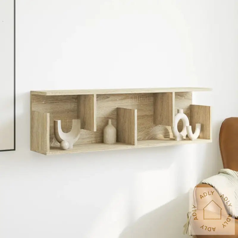 Dette veggskapet i moderne stil er både dekorativt og praktisk, og passer utmerket som et ekstra møbel til hjemmet ditt. Med sitt stilrene utseende i sonoma eik, gir det et tidløst preg som lett lar seg kombinere med andre møbler.