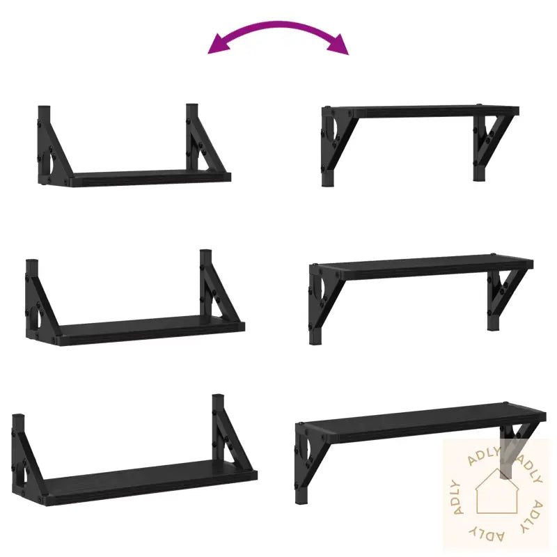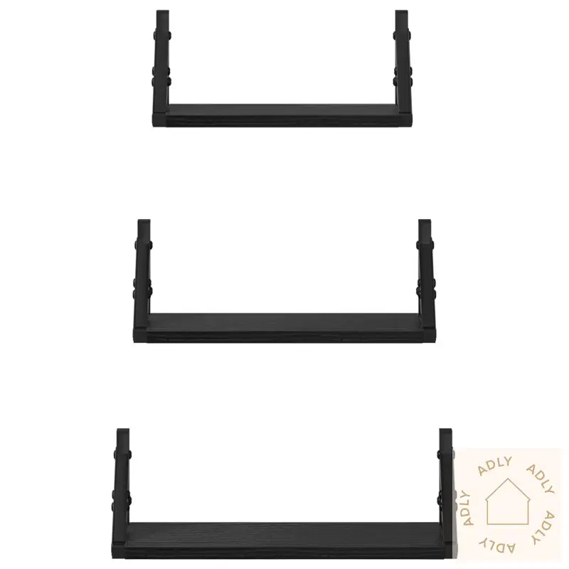 Farge: SvartForm: RektangulærMateriale: Naturlig treOverflatebehandling: MattInnendørs/Ute: Kun innendørsTrekk inkludert: NeiRom: StueKapasitet: Maksimal vektkapasitet per hylleMontering inkludert: JaOverflatemål: 2 cmStige: NeiMerke:Leveransen inneholder: VegghyllerMontering kreves: NeiAnbefalt antall personer for montering: 1